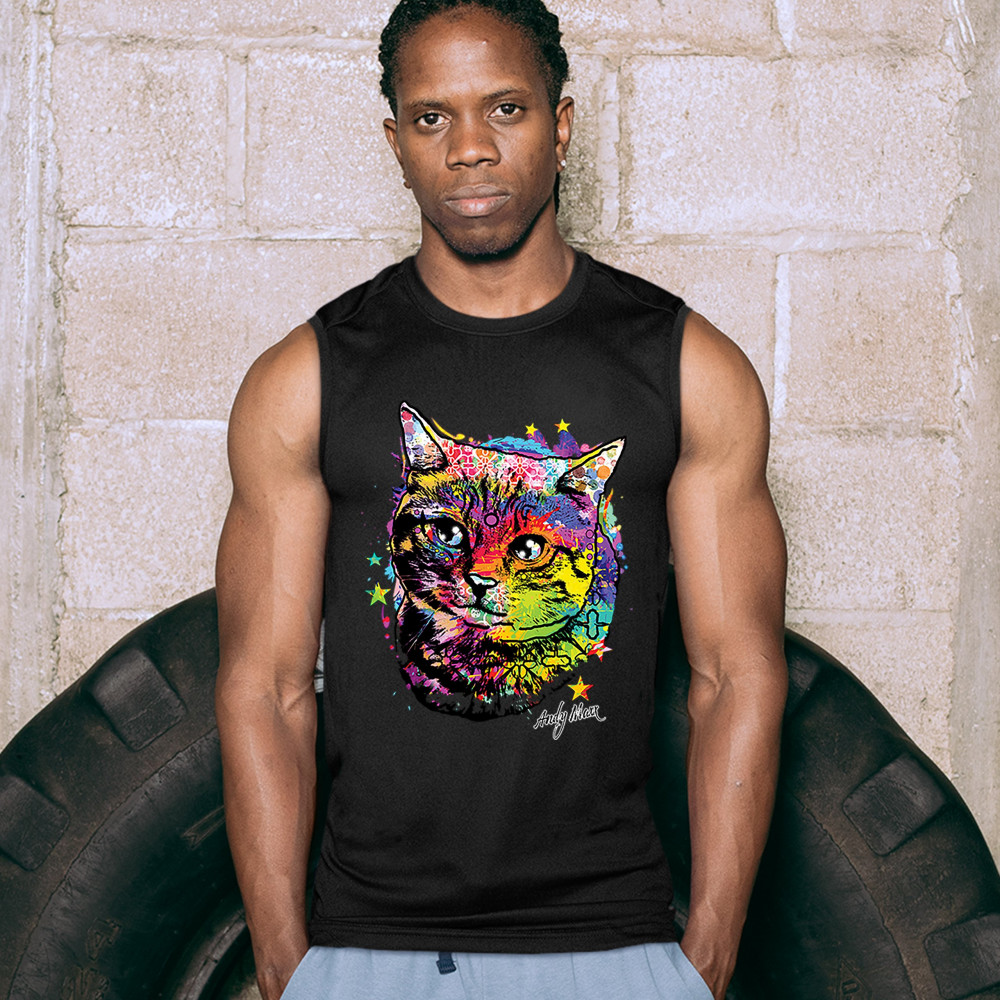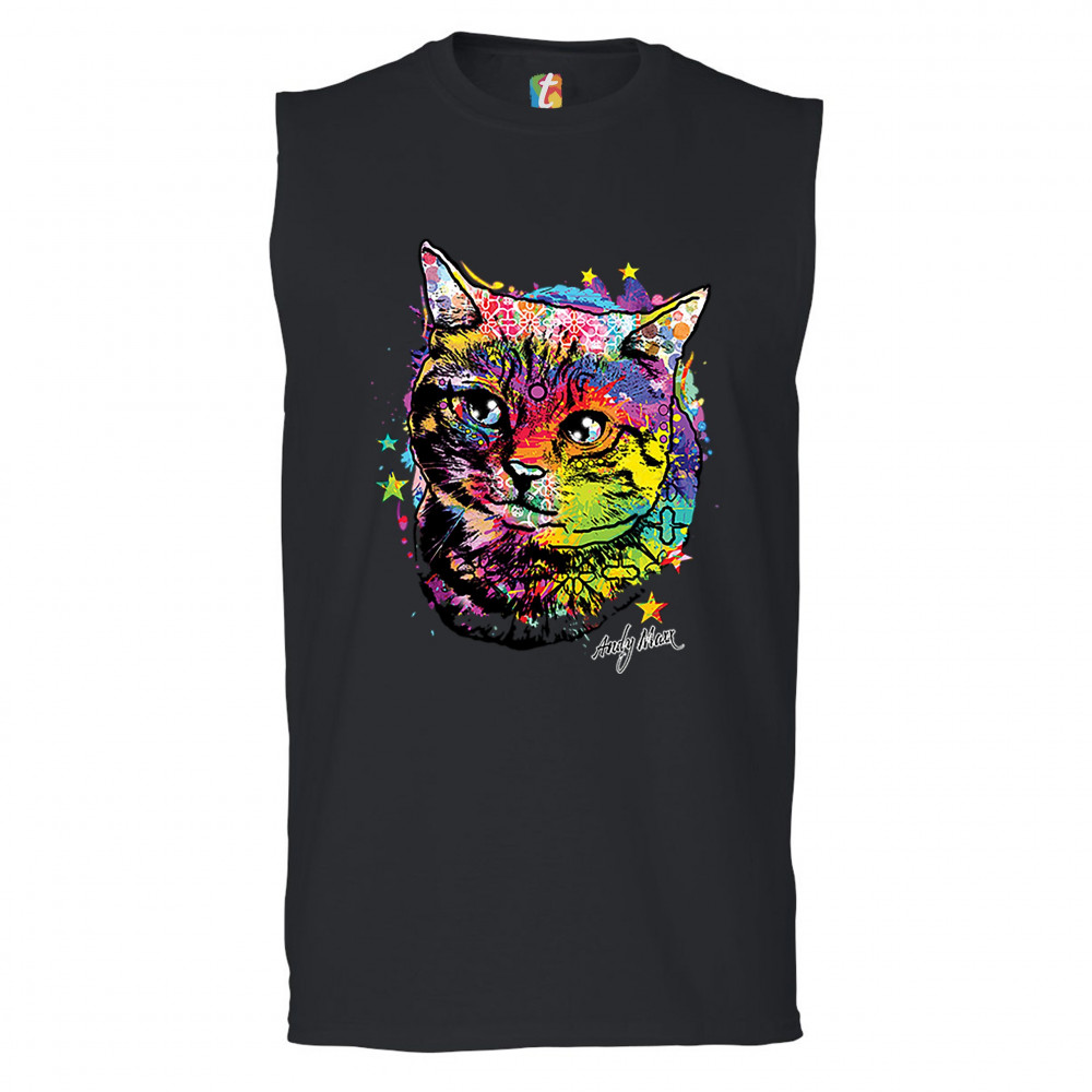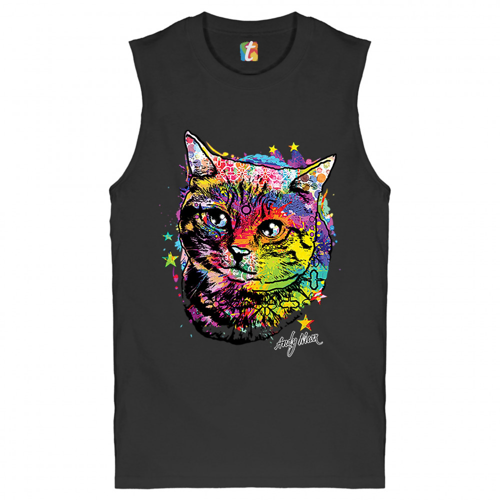 ADORABLE KITTEN muscle shirt neon multicolor kitty andy maxx cat lover men's black