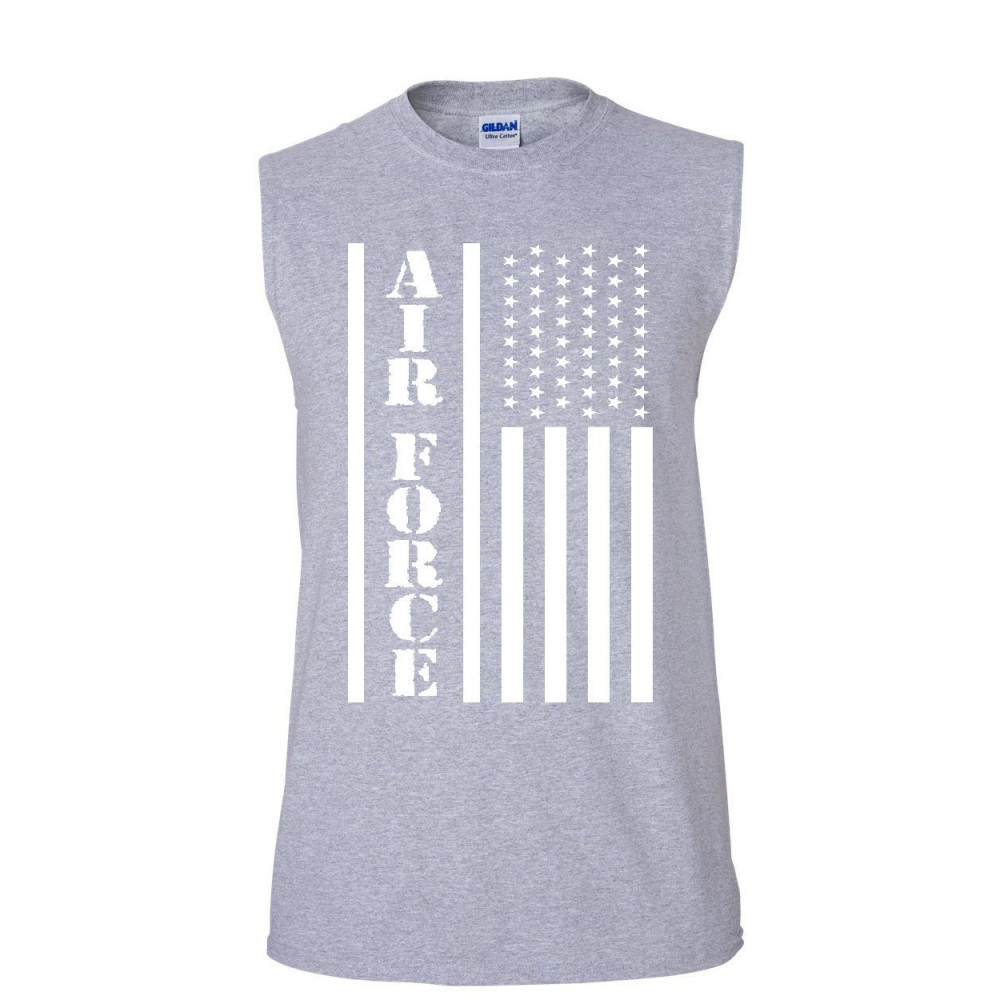 AIR FORCE FLAG MILITARY muscle shirt patriot veteran stars & stripes sleeveless gray