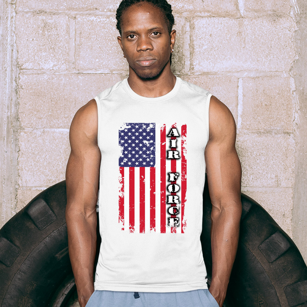AIR FORCE muscle shirt distressed american flag u.s. armed forces men's white