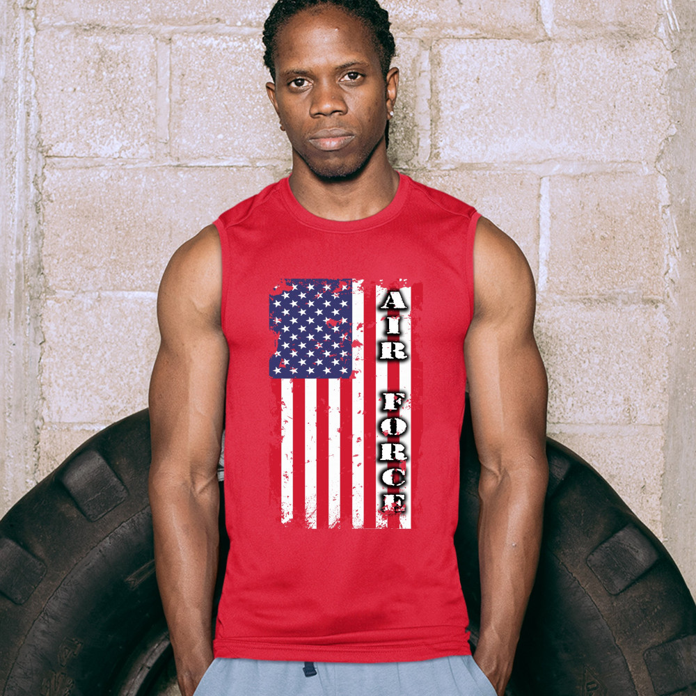 AIR FORCE muscle shirt distressed american flag u.s. armed forces men's red
