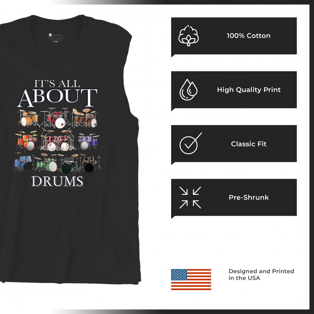 ALL ABOUT DRUMS muscle shirt colorful funny drummer music festival party men's black