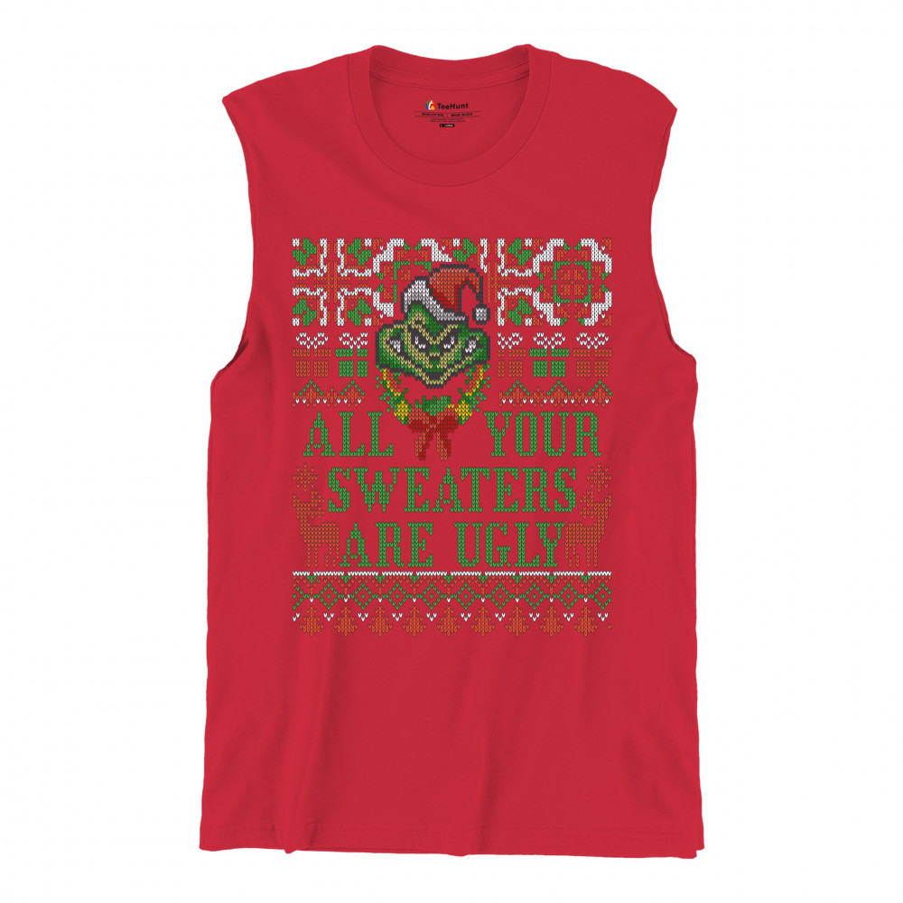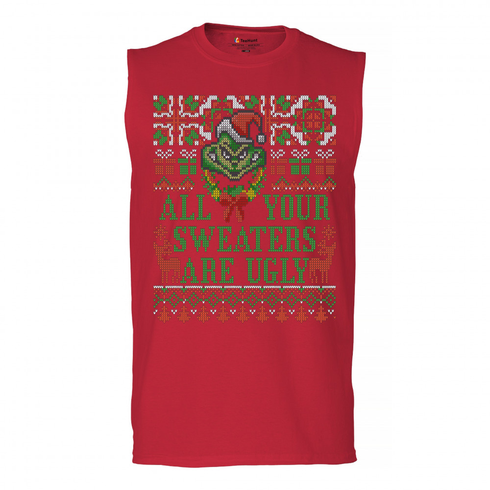 ALL YOUR SWEATERS ARE UGLY muscle shirt funny merry christmas rudolph men's red