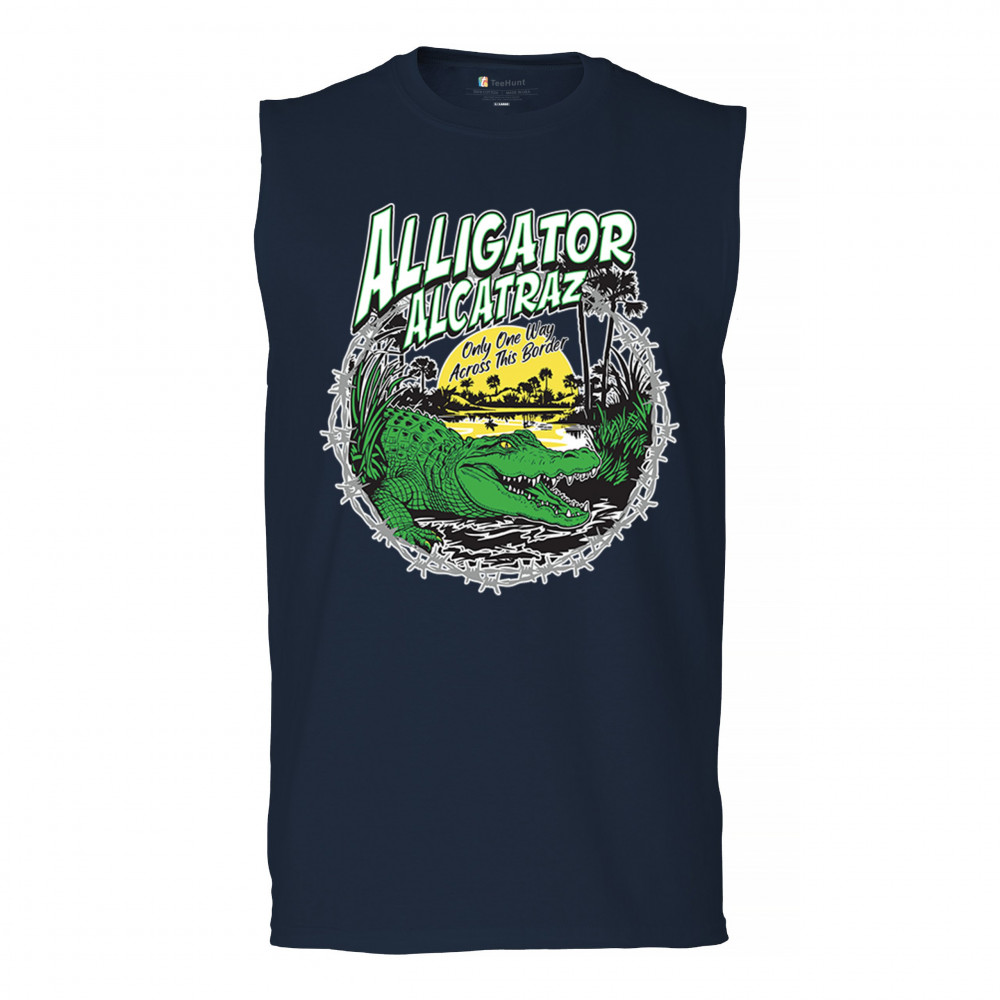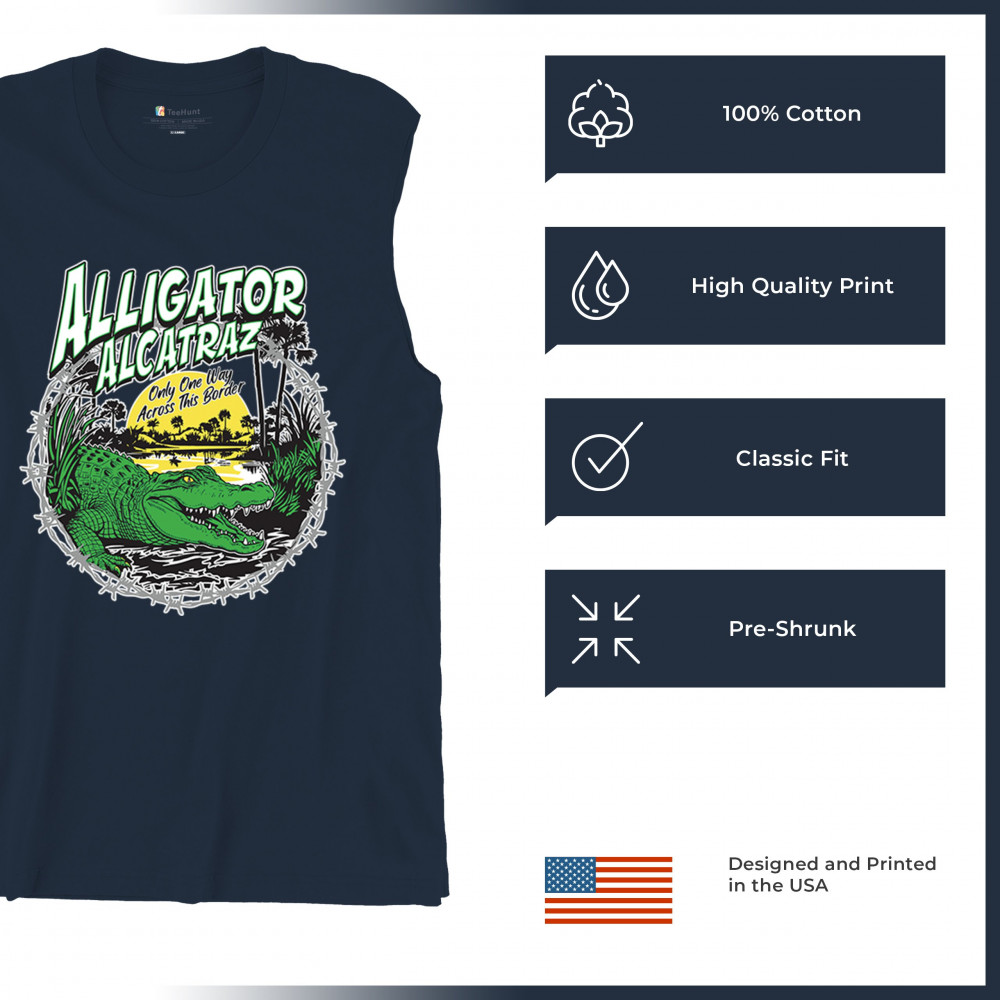 Alligator Alcatraz design with border security message. For conservative, Republican, and patriotic Americans who stand for America First values.