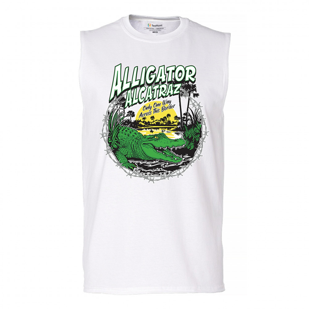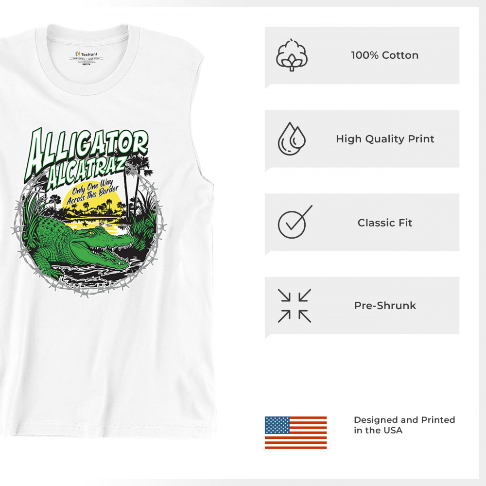 Alligator Alcatraz design with border security message. For conservative, Republican, and patriotic Americans who stand for America First values.
