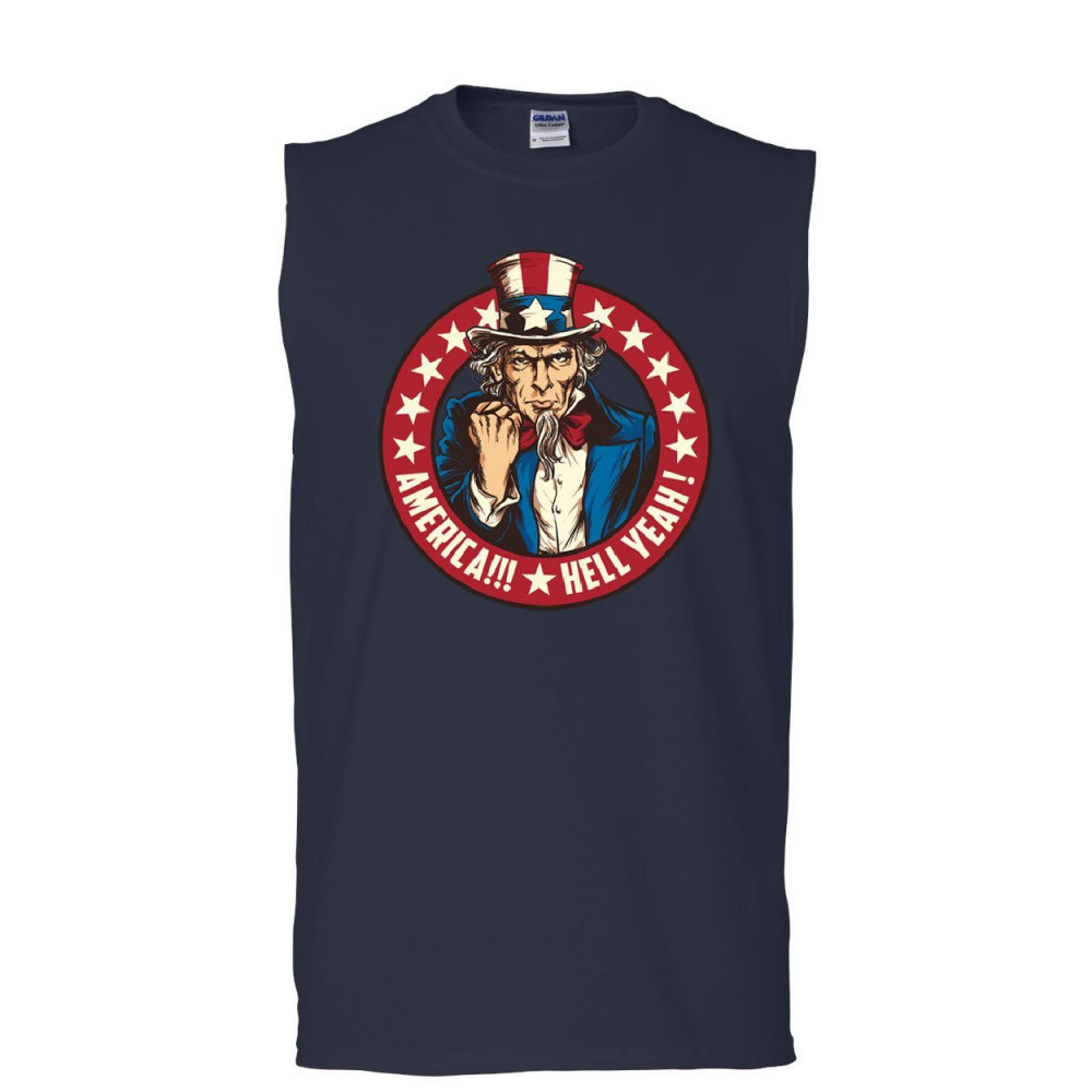 AMERICA HELL YEAH muscle shirt uncle sam patriotic stars and stripes sleeveless navy blue