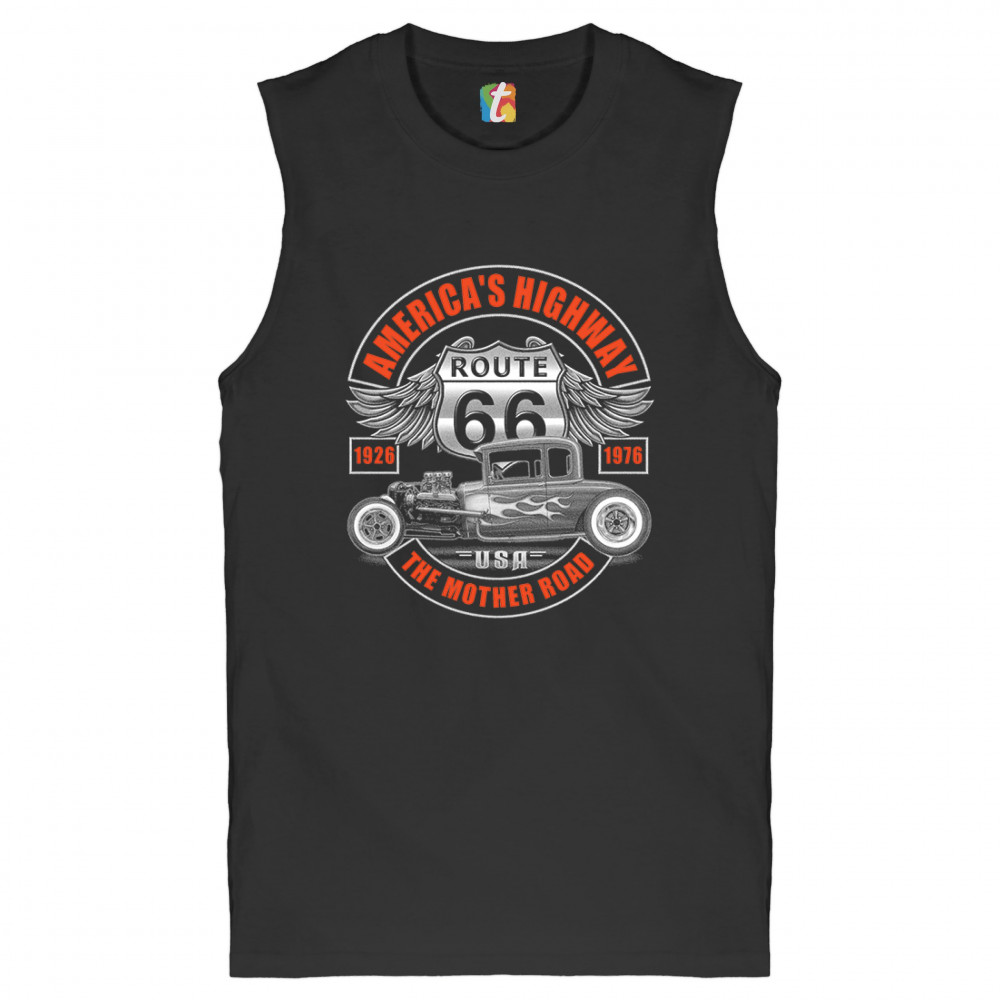 AMERICA'S HIGHWAY muscle shirt route 66 the mother road hot rod men's black