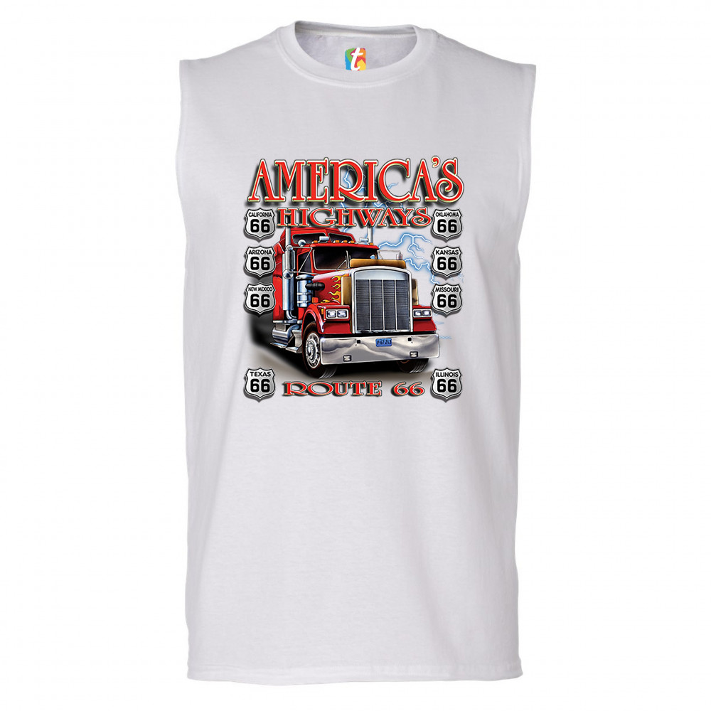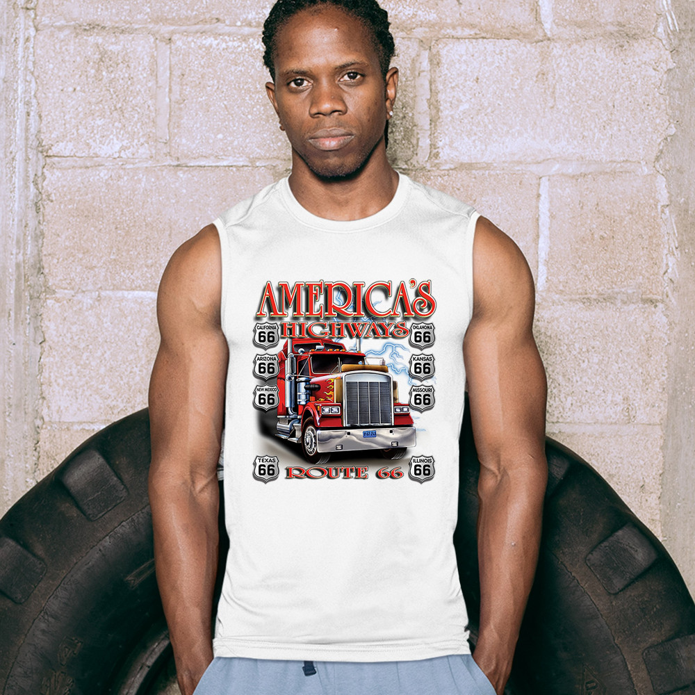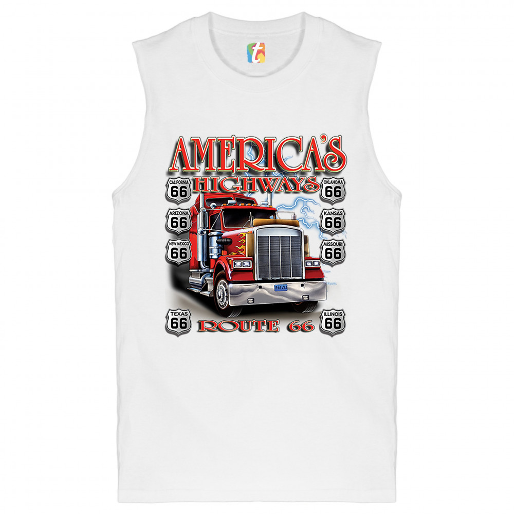 AMERICA'S HIGHWAYS ROUTE 66 muscle shirt truck driver mechanic teamster men's white
