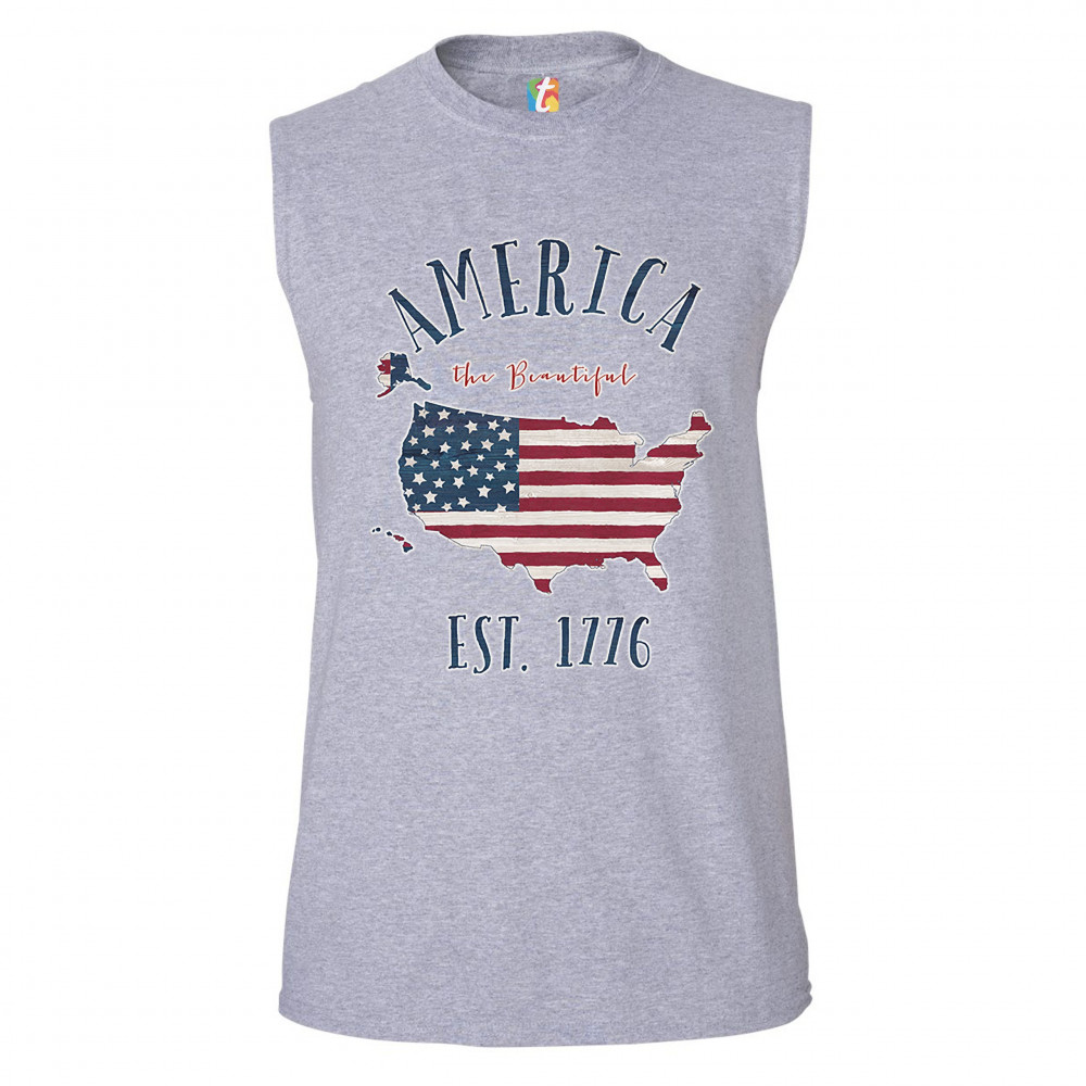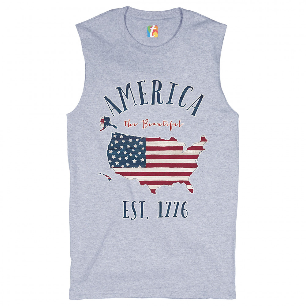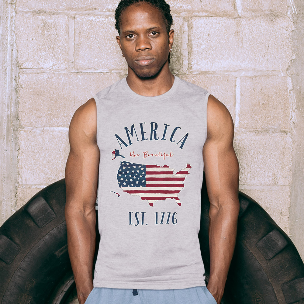 AMERICA THE BEAUTIFUL EST. 1776 muscle shirt patriotic 4th of july usa men's gray