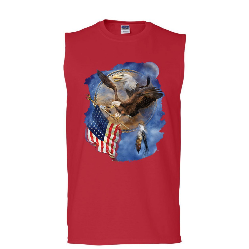 BALD EAGLE DREAM CATCHER american bald eagle holding a flag muscle shirt patriot dreamcatcher sleeveless red