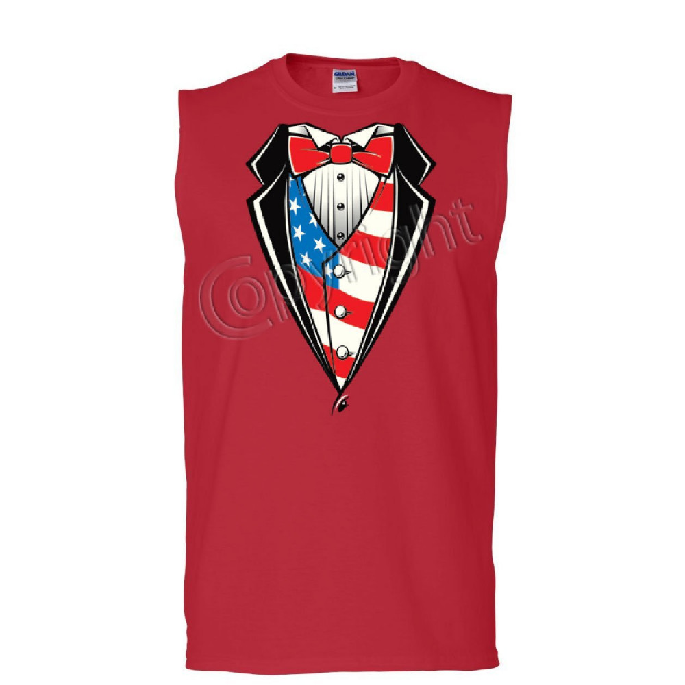 AMERICAN FLAG TUXEDO muscle shirt funny 4th of july stars and stripes sleeveless red