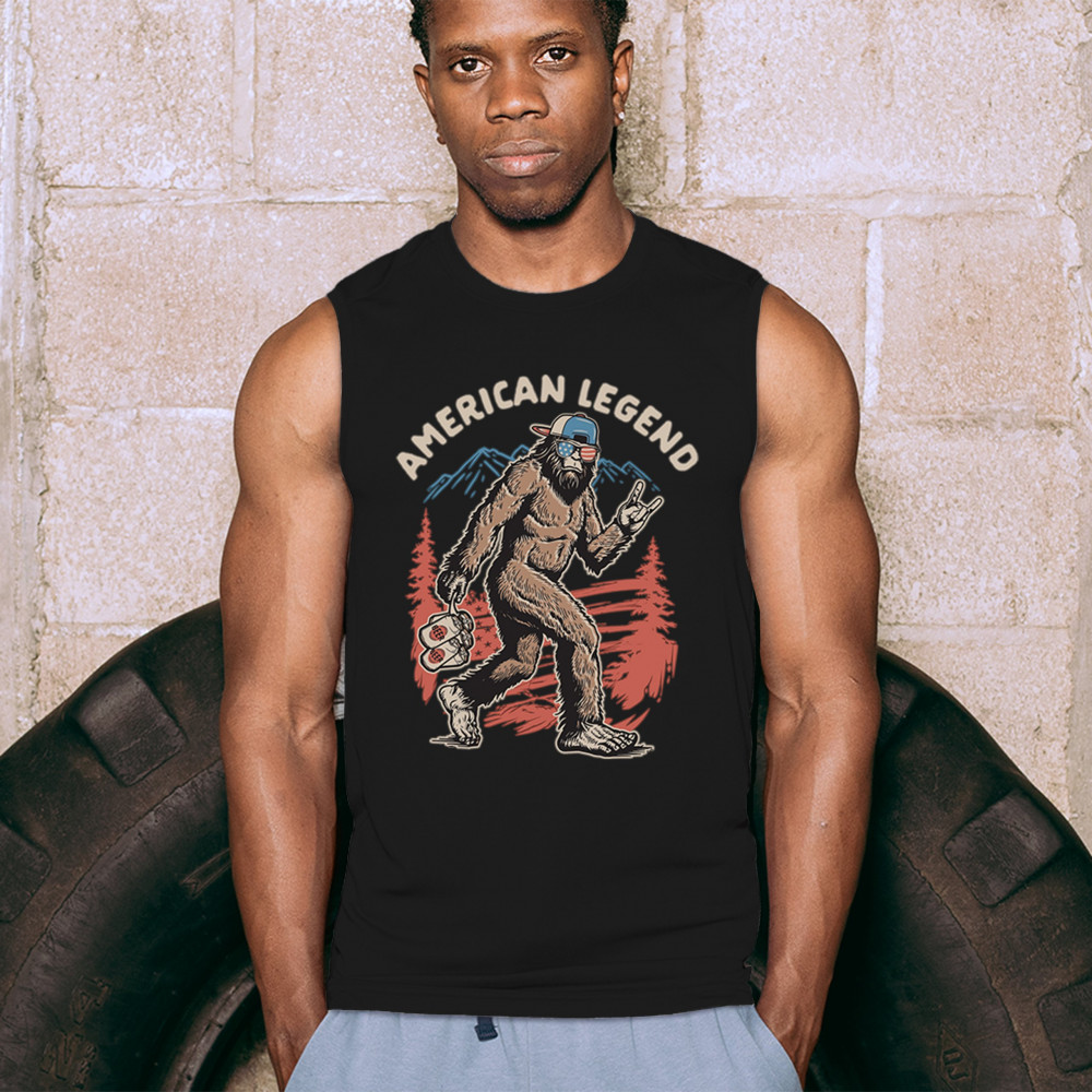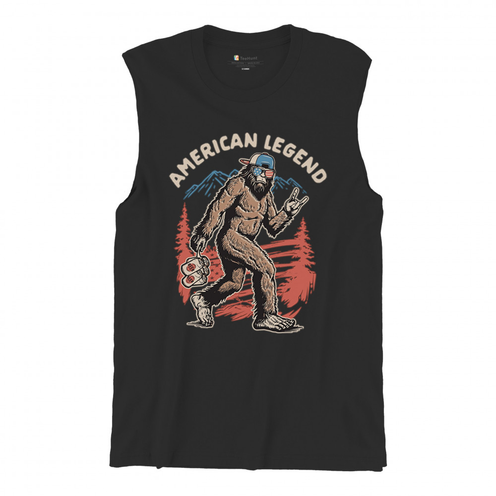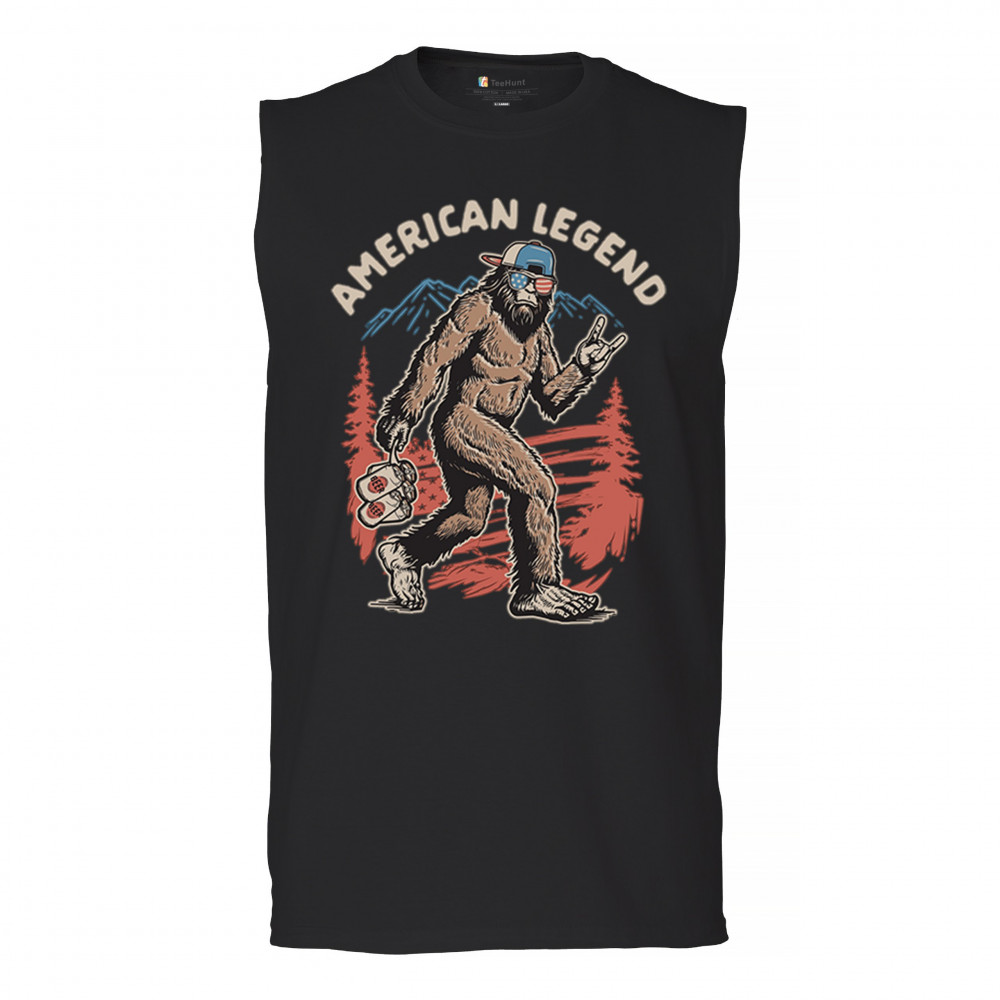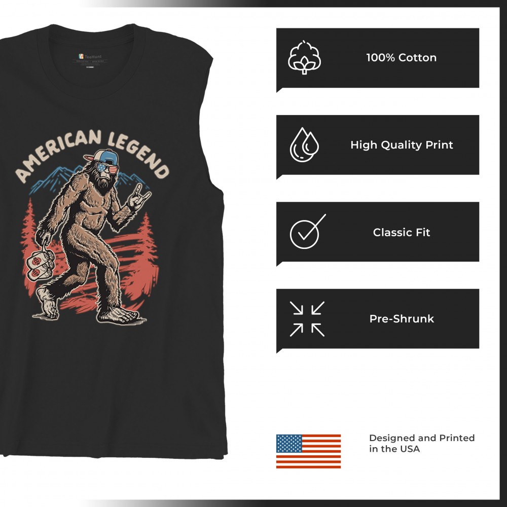 Funny Bigfoot design with patriotic flair—ideal for BBQs, beer lovers, campers, and cryptid fans who love to party in style!