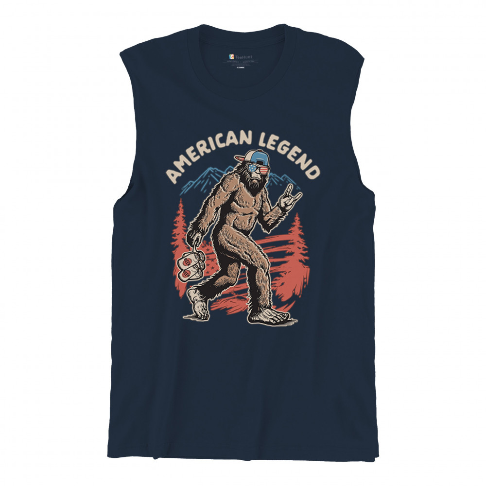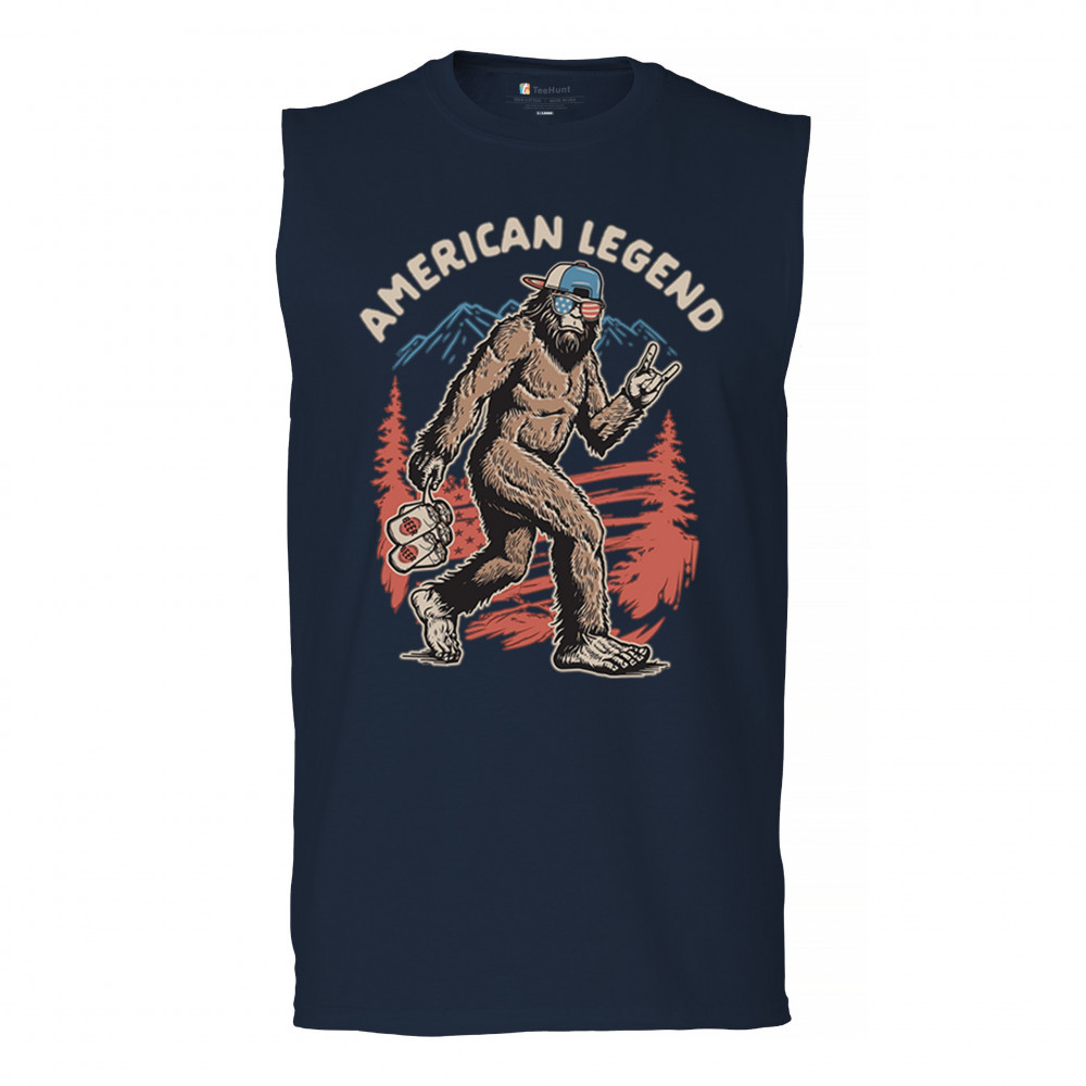 Funny Bigfoot design with patriotic flair—ideal for BBQs, beer lovers, campers, and cryptid fans who love to party in style!