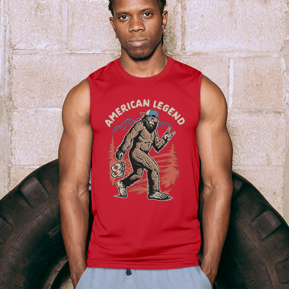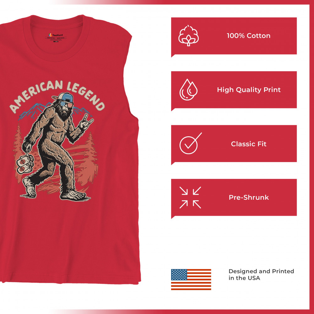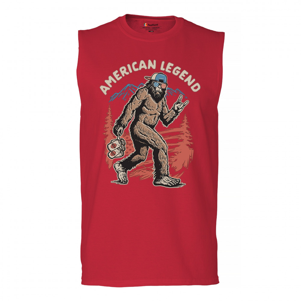 Funny Bigfoot design with patriotic flair—ideal for BBQs, beer lovers, campers, and cryptid fans who love to party in style!
