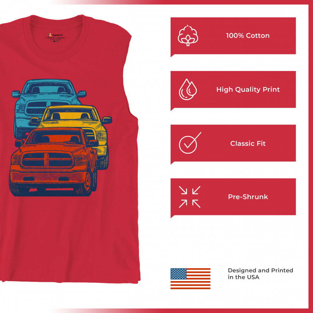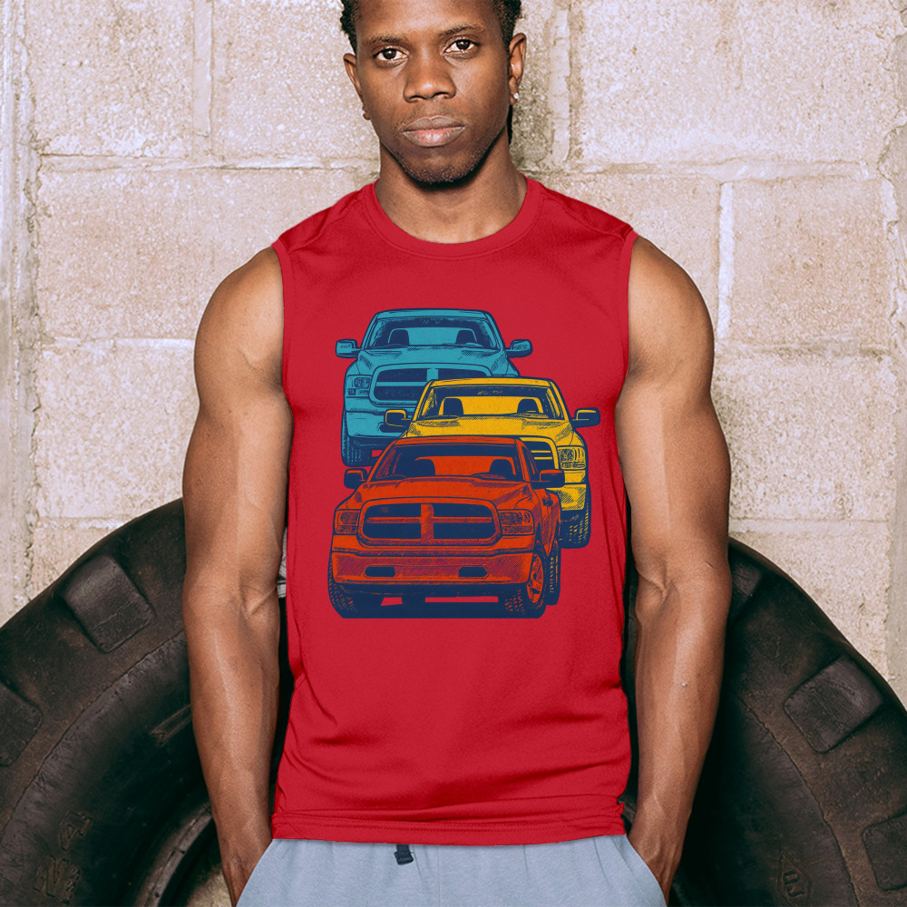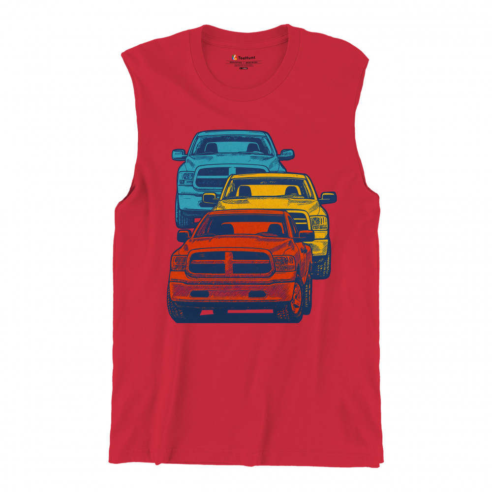 Boldly stacked and powerfully styled, this multicolor truck design showcases red, yellow, and blue pickups in a vertical formation. Made for fans of lifted truck culture, horsepower, and off-road pride, it celebrates diesel grit, road attitude, and the spirit of truck meets and gearhead unity.