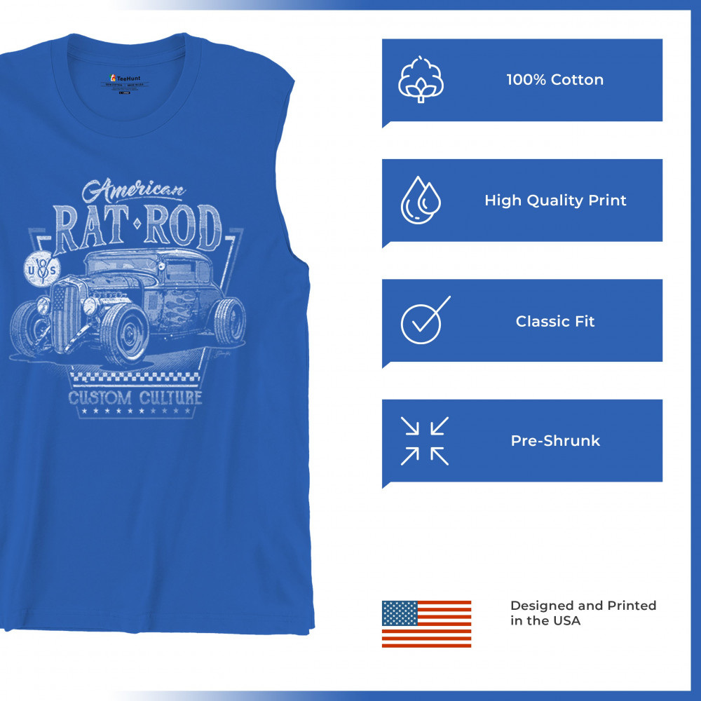 Celebrate American custom culture with this unique rat rod design, perfect for car enthusiasts and hot rod fans. Bold, stylish, and ideal for everyday wear.