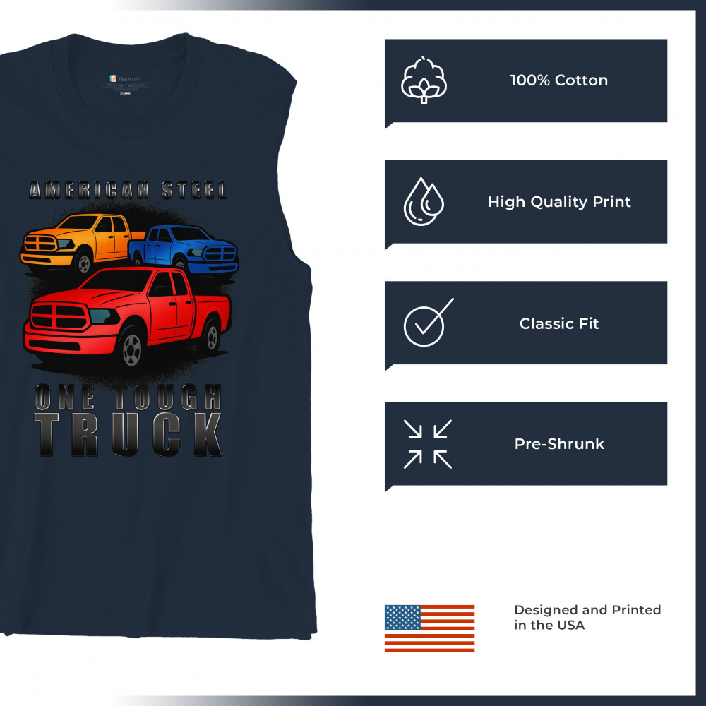 Celebrate the power of American steel with this rugged design featuring three bold pickup trucks in red, yellow, and blue. Made for gearheads, road warriors, and those who respect durability and performance. Perfect for truck shows, off-road events, and meetups.