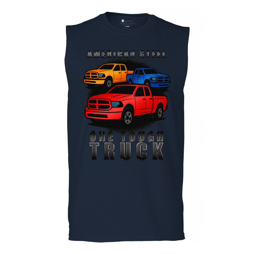 Bold truck design with red, yellow, and blue pickups. Built for fans of American steel, tough performance, and road warrior pride.