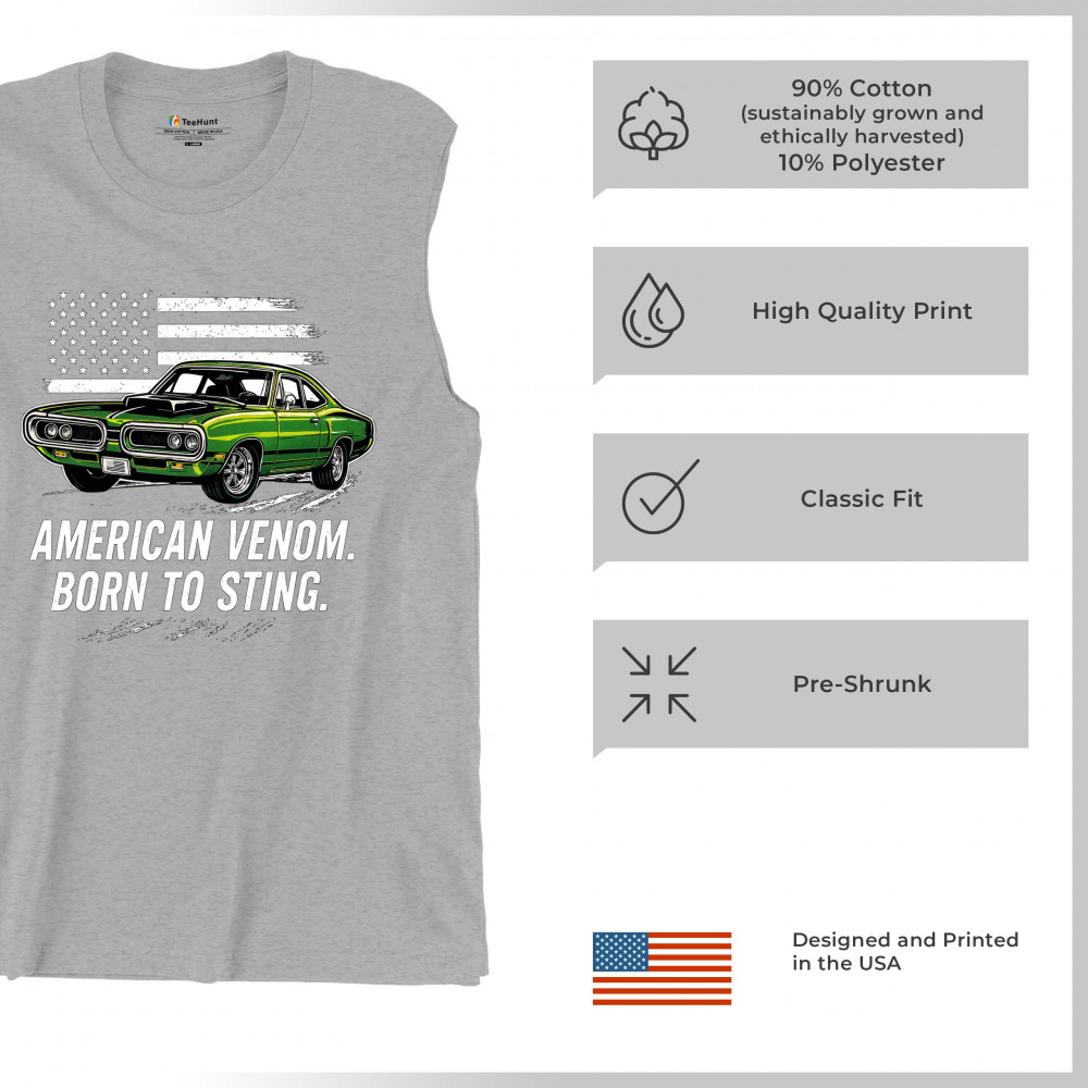 Inject venom into your street style with this bold green muscle car design. With “Born to Sting†power and a backdrop of American pride, this graphic is perfect for Scat fans, gearheads, and drivers who embrace speed, dominance, and the sound of true muscle. Rule car meets, rev battles, and highway runs with unmatched attitude.