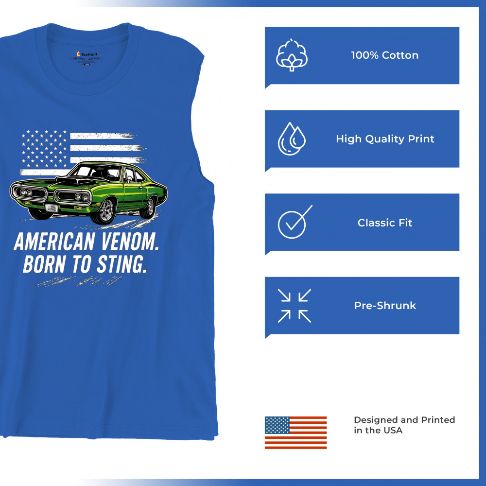 Inject venom into your street style with this bold green muscle car design. With “Born to Sting†power and a backdrop of American pride, this graphic is perfect for Scat fans, gearheads, and drivers who embrace speed, dominance, and the sound of true muscle. Rule car meets, rev battles, and highway runs with unmatched attitude.