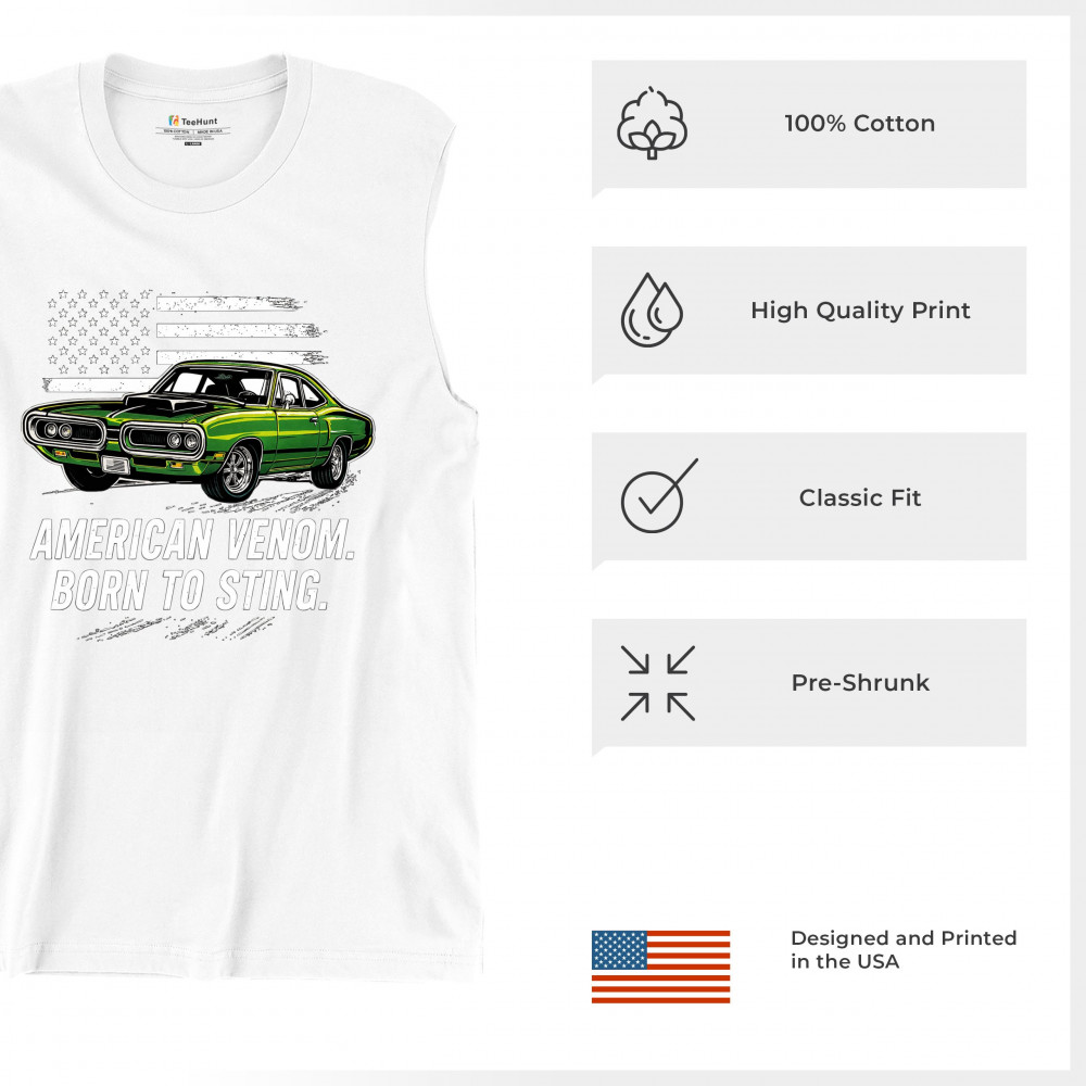 Inject venom into your street style with this bold green muscle car design. With “Born to Sting†power and a backdrop of American pride, this graphic is perfect for Scat fans, gearheads, and drivers who embrace speed, dominance, and the sound of true muscle. Rule car meets, rev battles, and highway runs with unmatched attitude.
