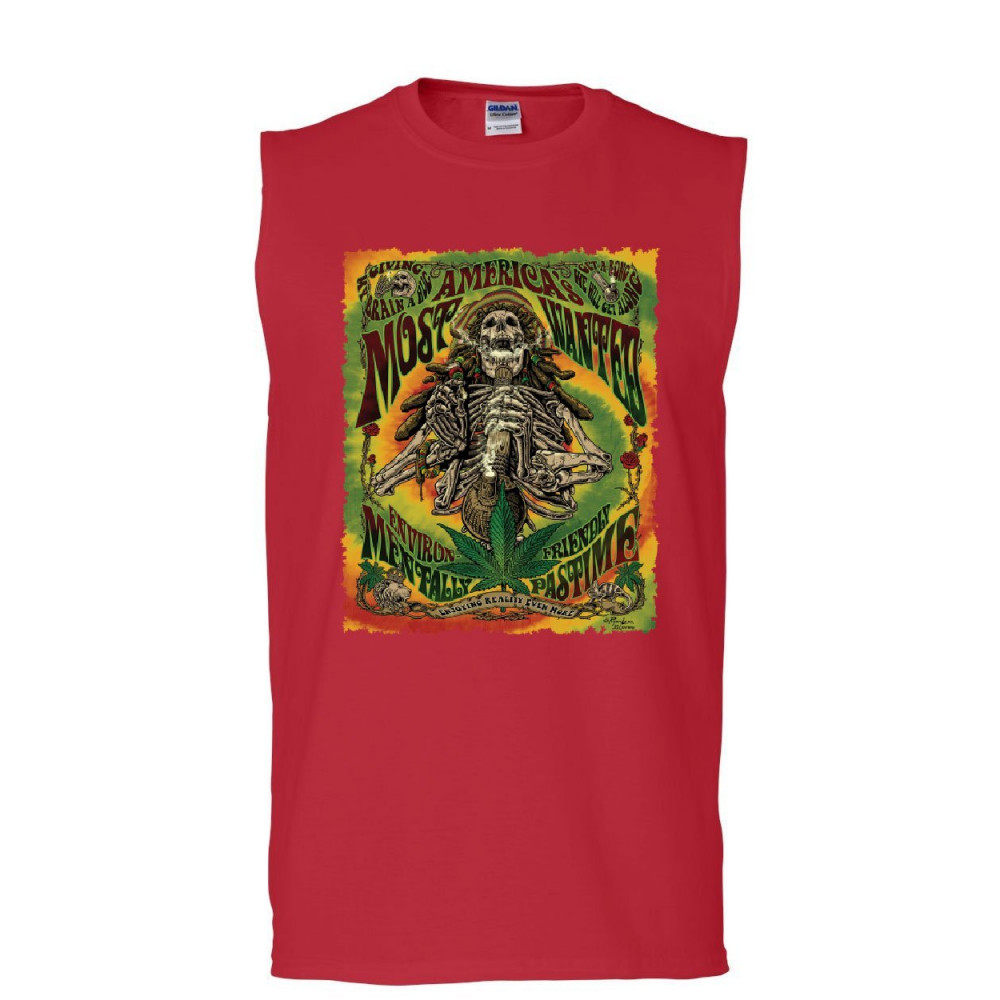 AMERICA'S MOST WANTED muscle shirt 420 smoking weed marijuana rasta sleeveless red