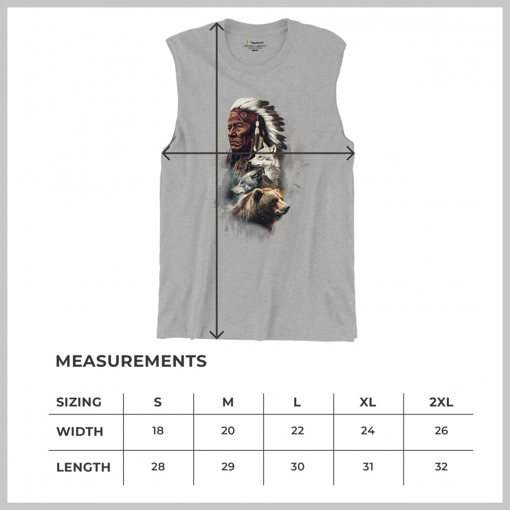 Tribal design with Native elder, wolves, and bear. A spiritual tribute to strength, wisdom, and guardianship in forest spirit symbolism.
