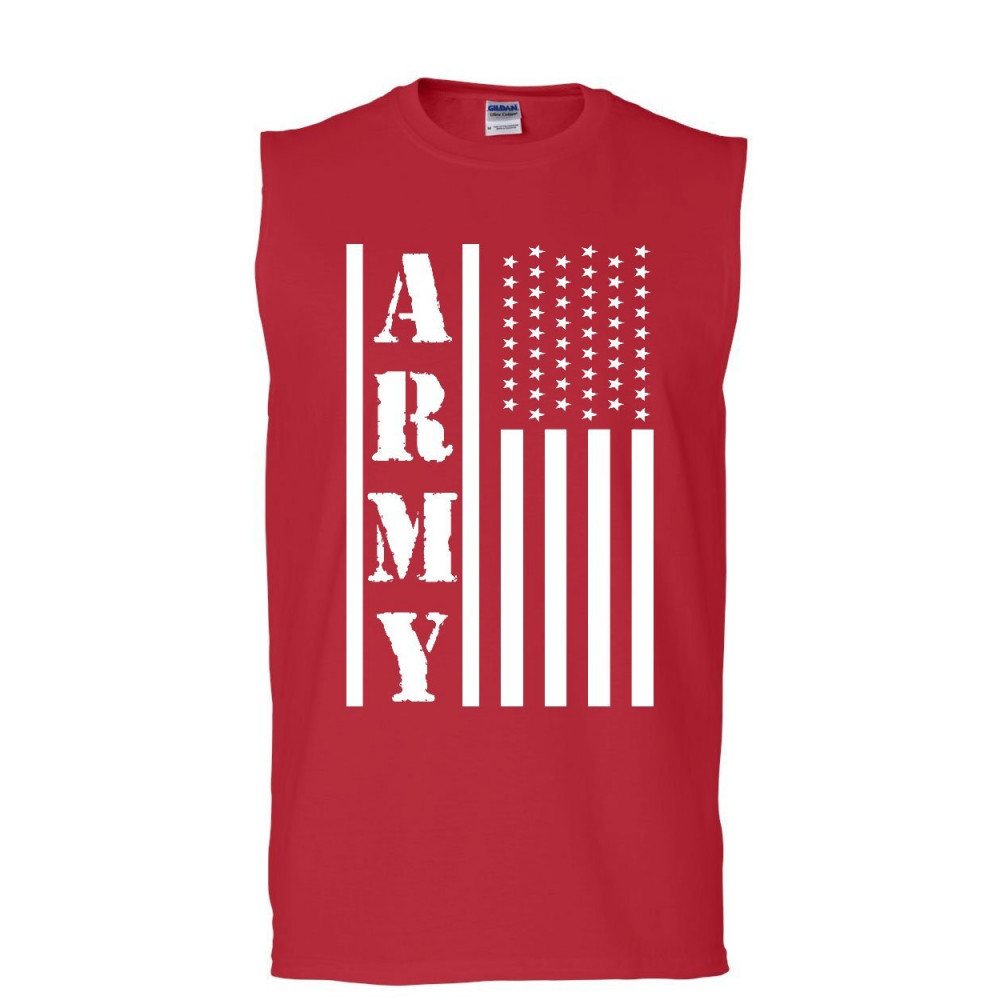 ARMY FLAG MILITARY muscle shirt patriot veteran stars & stripes honor sleeveless red