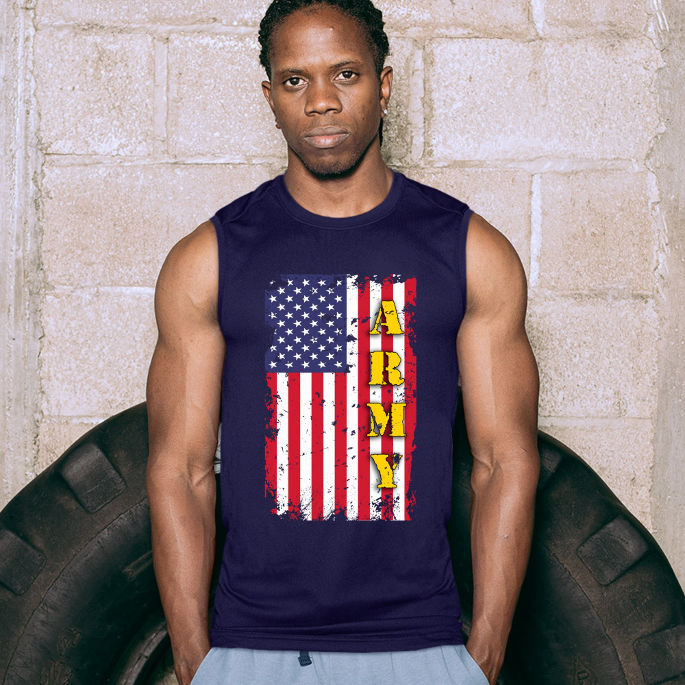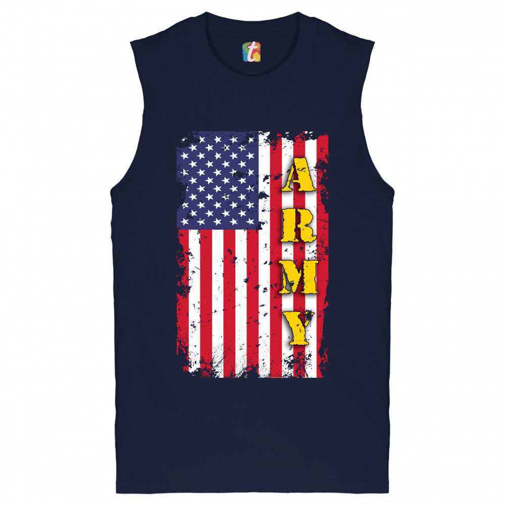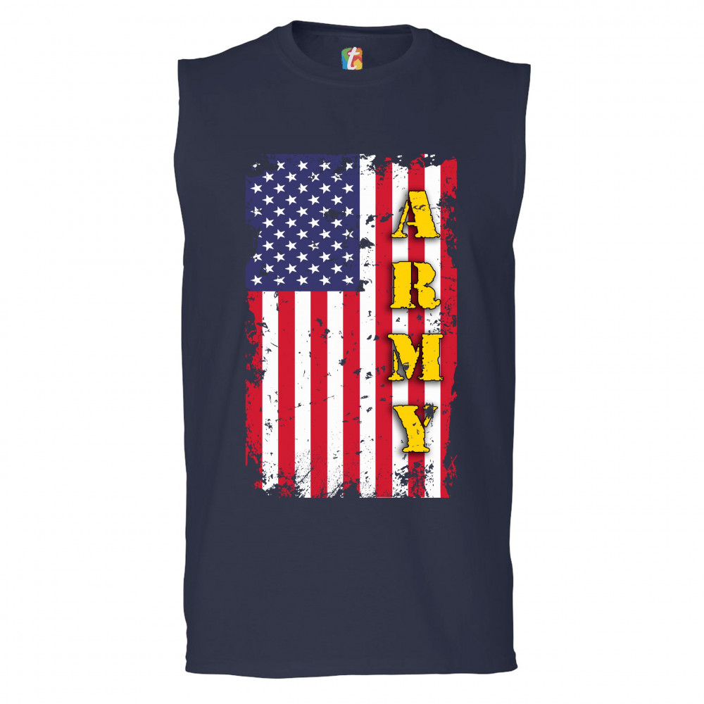 ARMY muscle shirt american flag united states armed forces patriotic men's navy blue