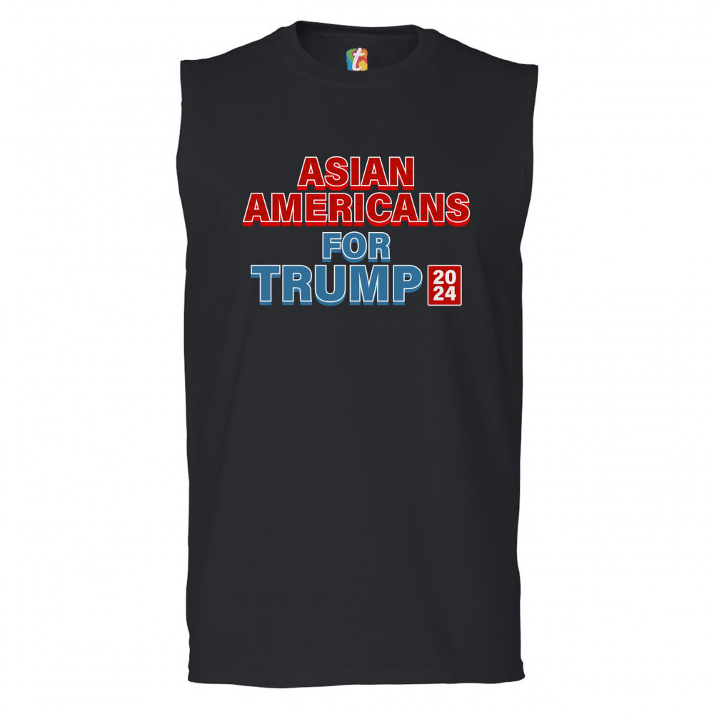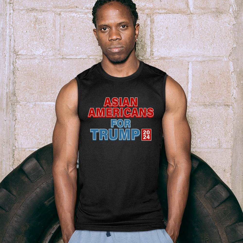 A political print saying "Asian Americans for Trump 2024". The words "Asian Americans" and the square with 2024 also have a pattern inside. A great choice to wear for a Trump rally or give as a gift to a Donald Trump supporter before 2024 presidential ele