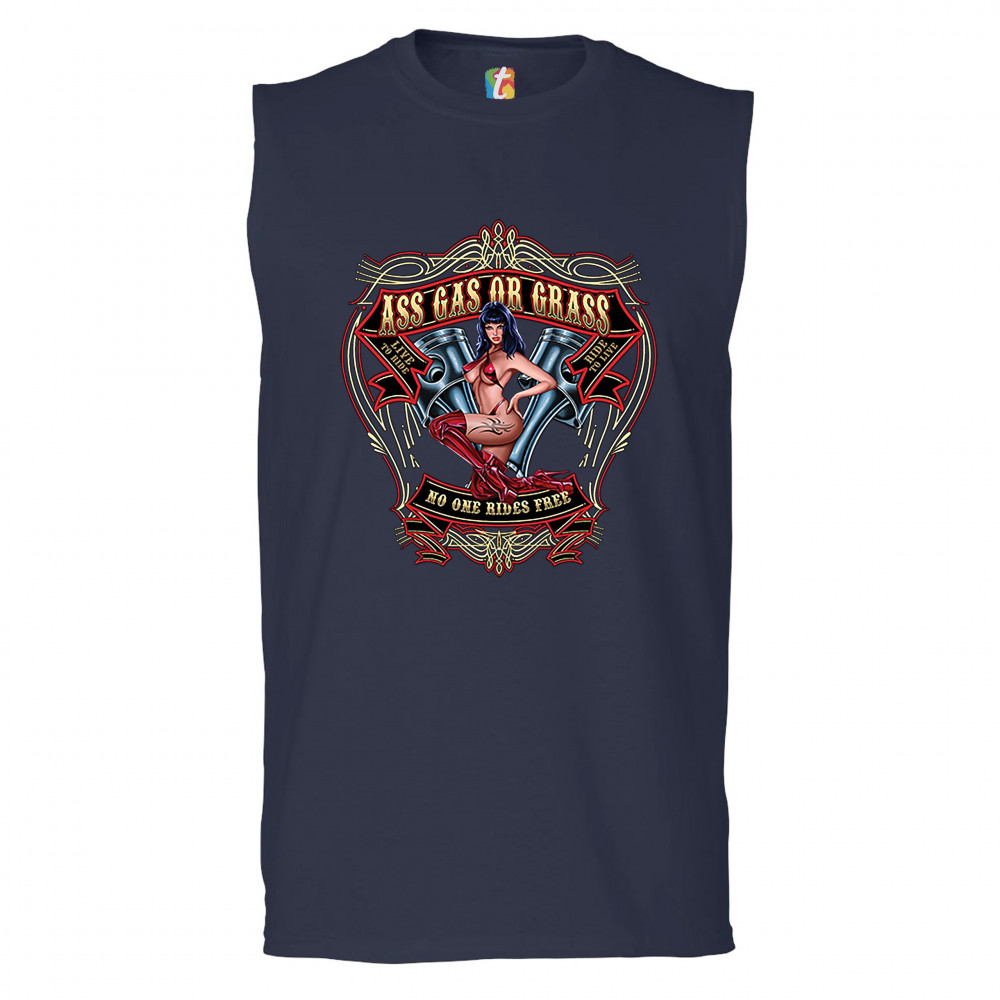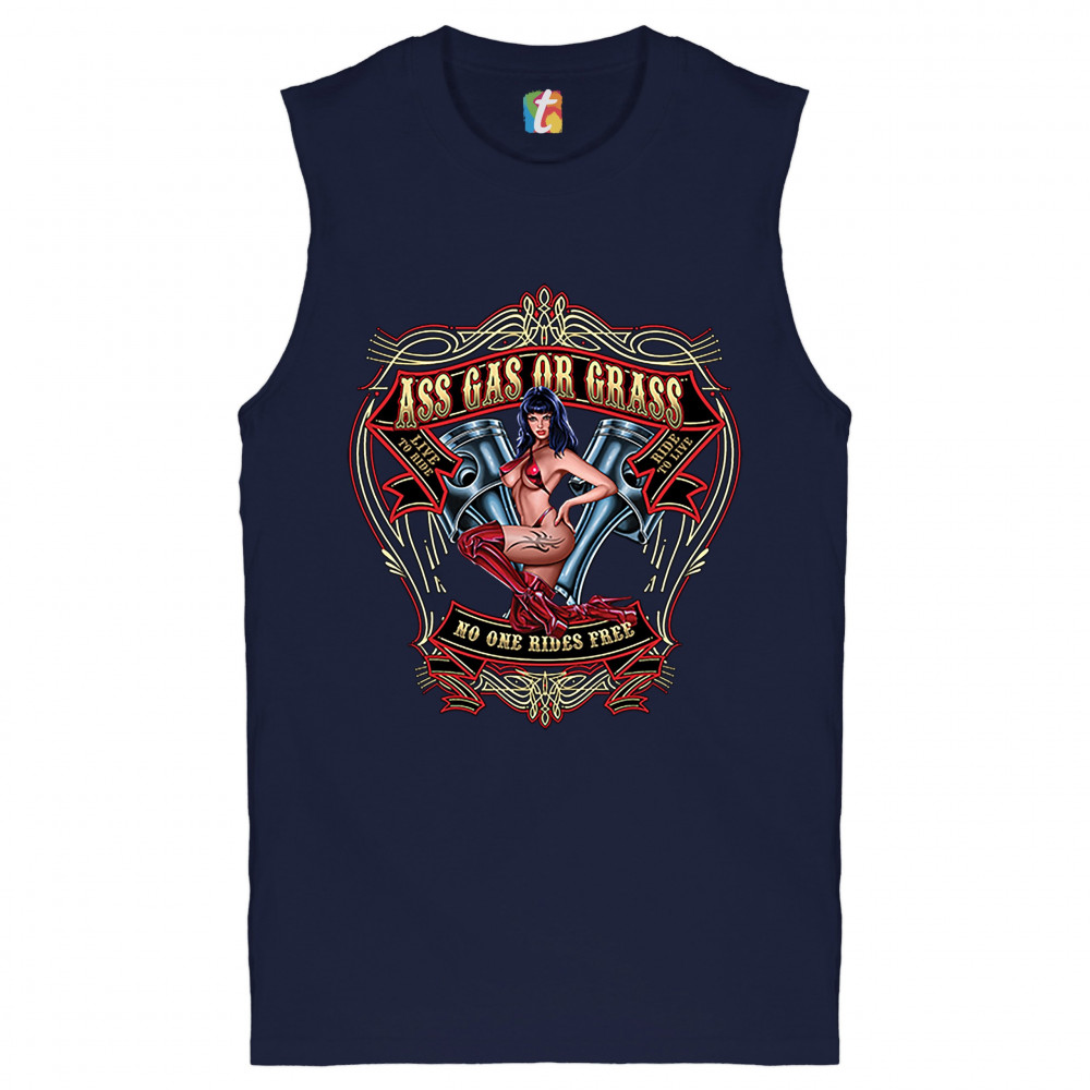 ASS GAS OR GRASS muscle shirt biker no one rides free live to ride men's navy blue