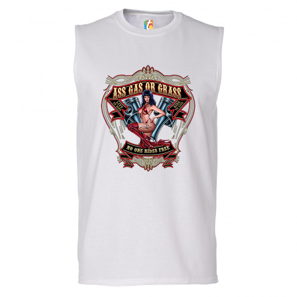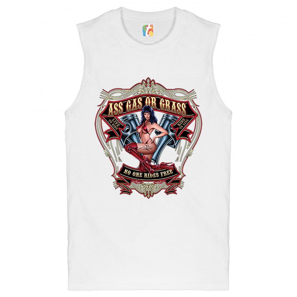 ASS GAS OR GRASS muscle shirt biker no one rides free live to ride men's white
