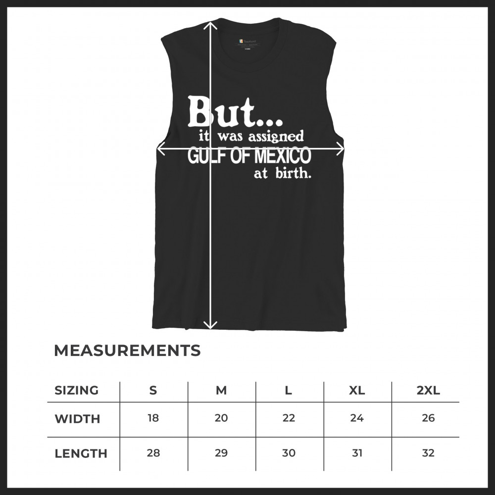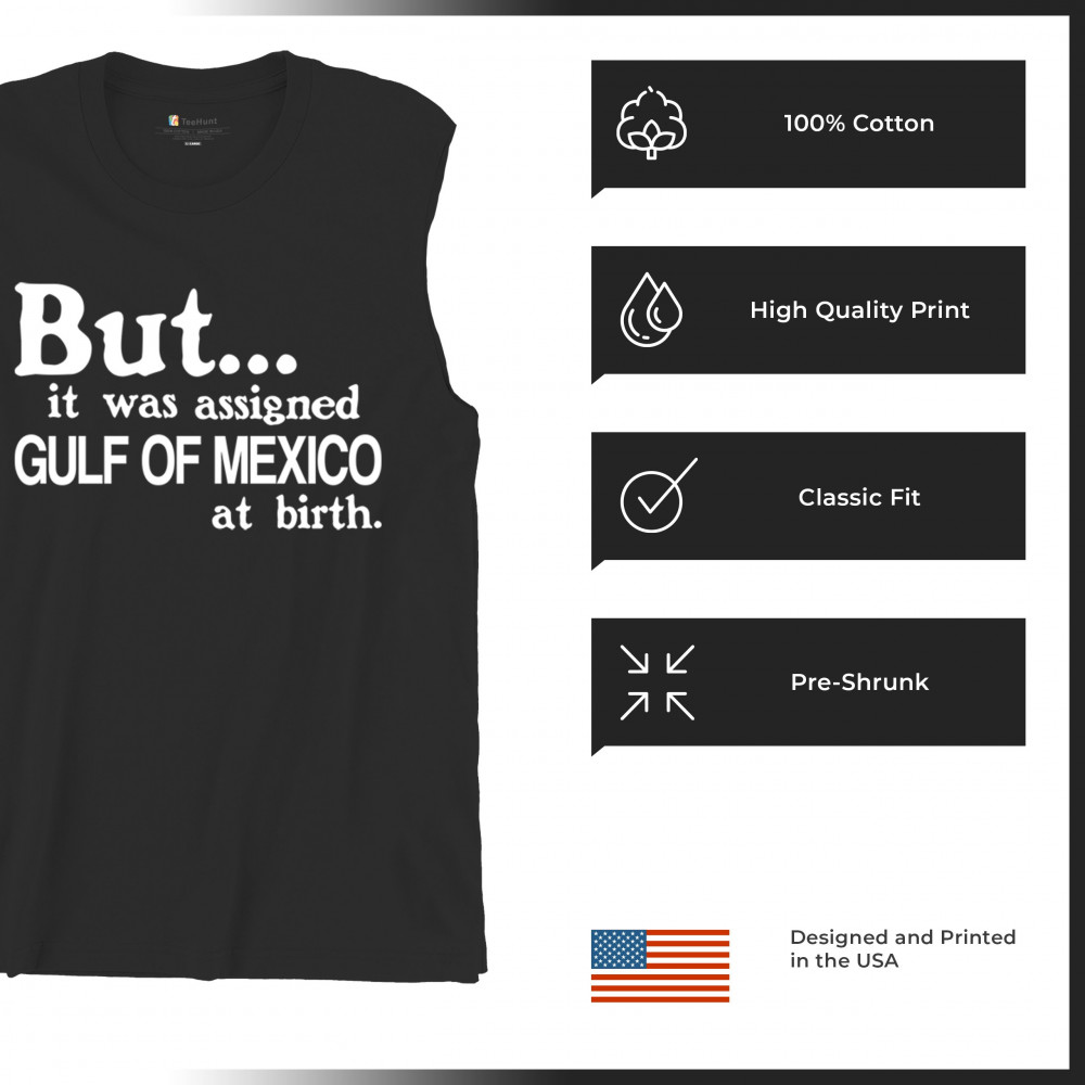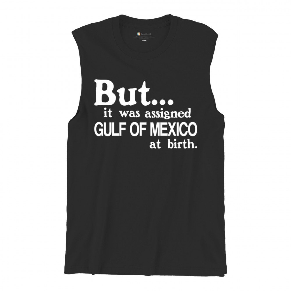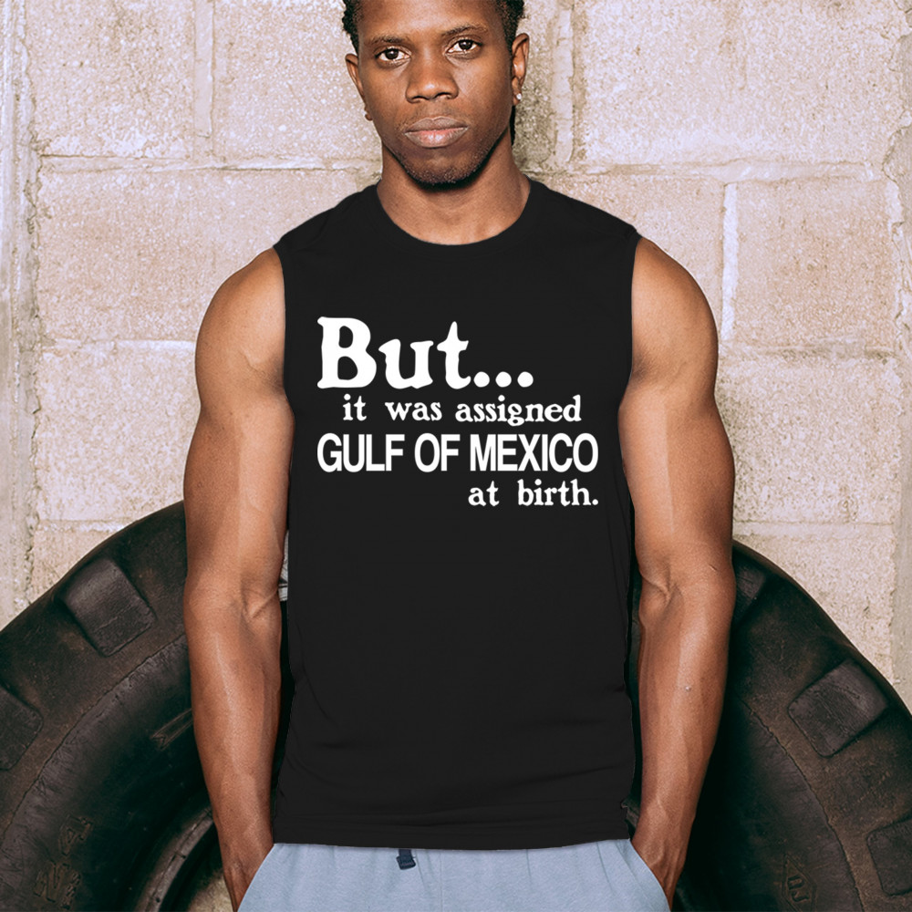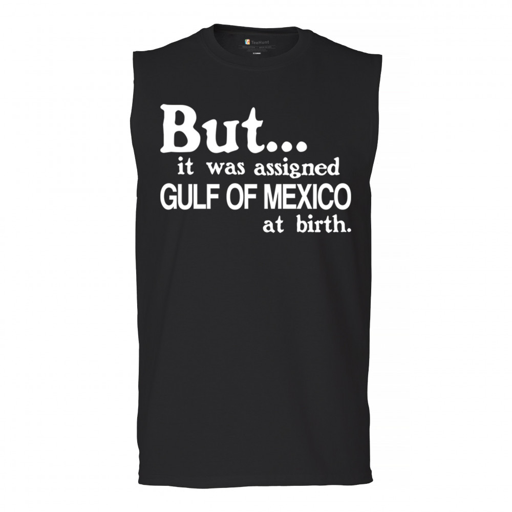 ASSIGNED GULF OF AMERICA muscle shirt funny gulf of mexico satire humor men's black