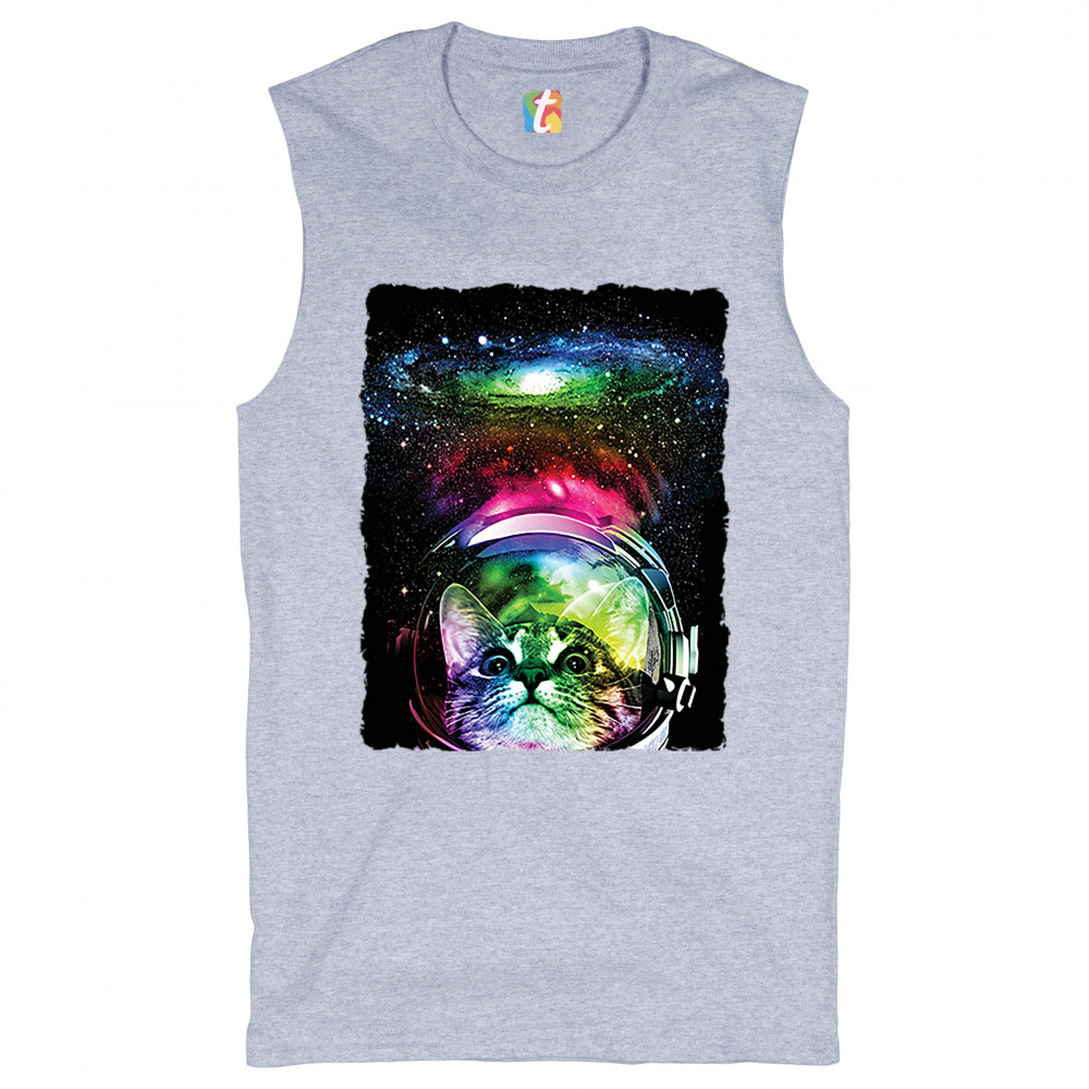 ASTRONAUT CAT muscle shirt space kitty men's gray