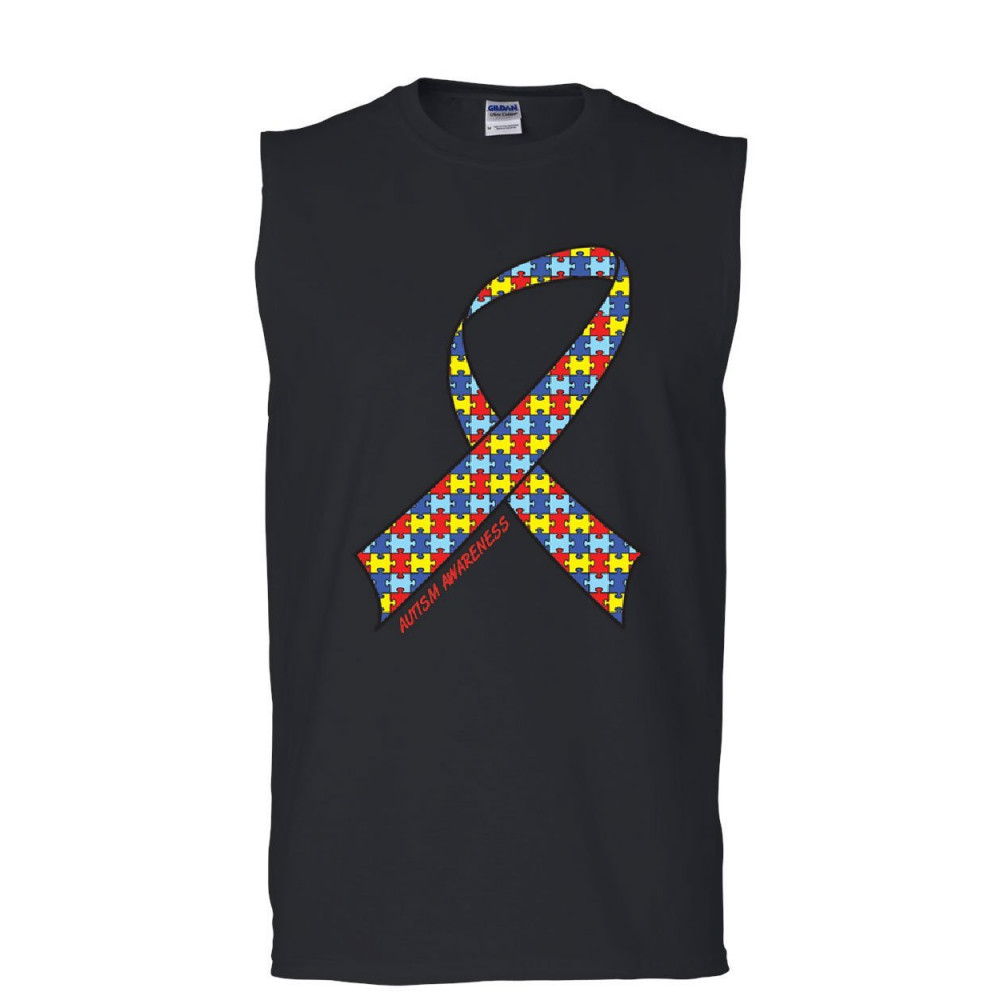 AUTISM AWARENESS RIBBON muscle shirt support care love asd asperger sleeveless black