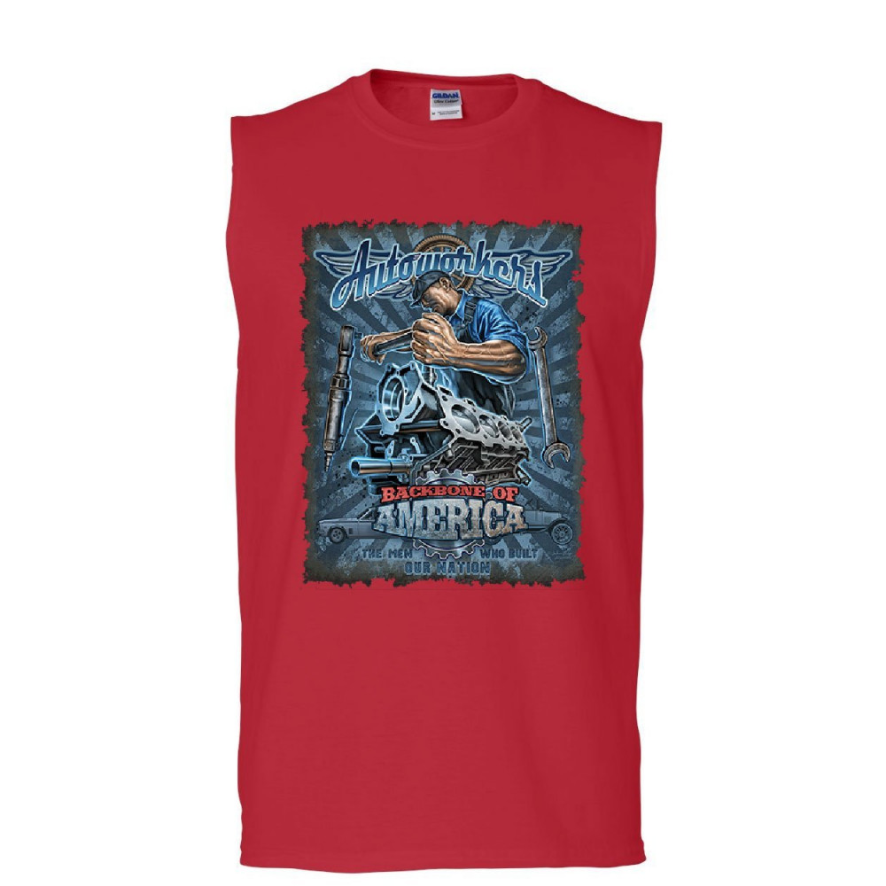 AUTOWORKERS - BACKBONE OF AMERICA autoworkers backbone of america muscle shirt car motor mechanic union sleeveless red