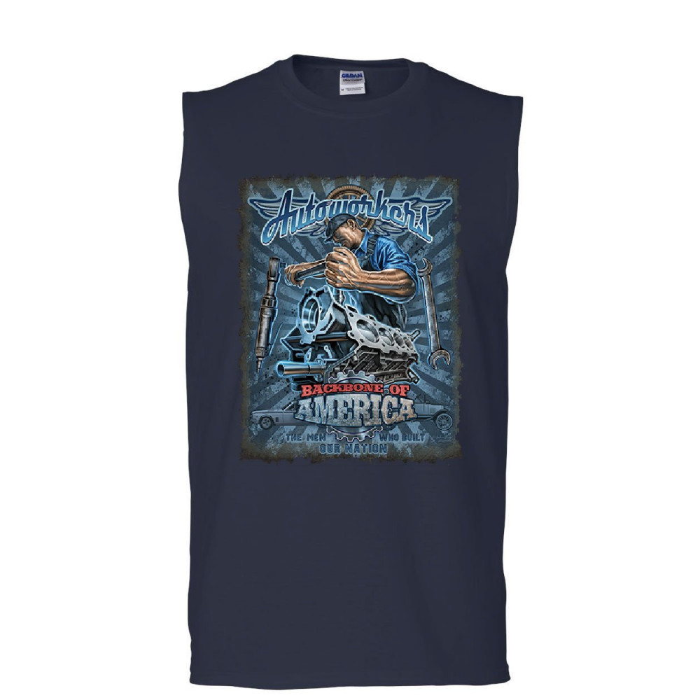 AUTOWORKERS - BACKBONE OF AMERICA autoworkers backbone of america muscle shirt car motor mechanic union sleeveless navy blue