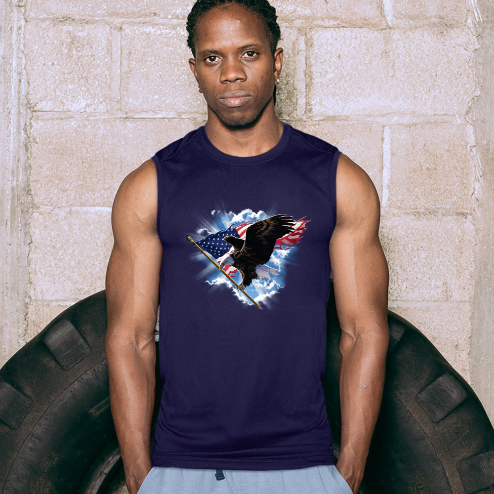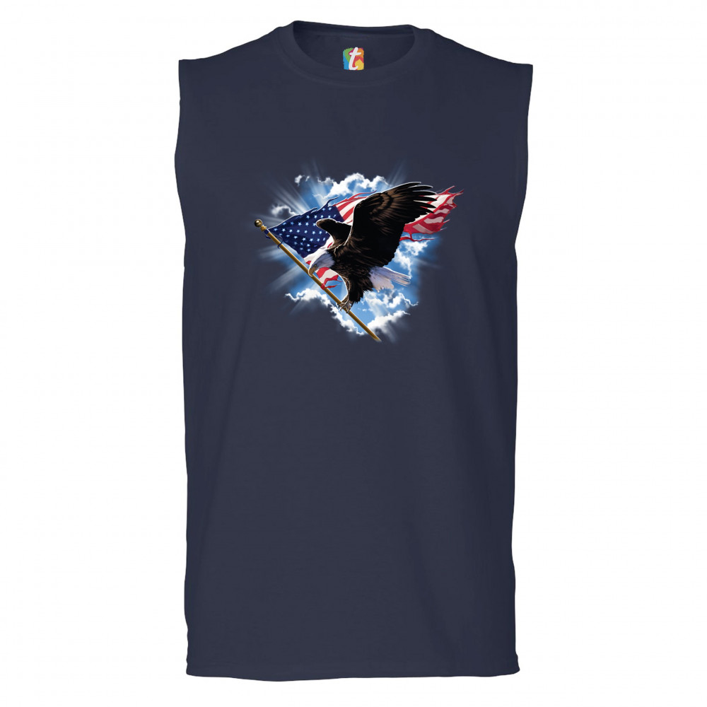 BALD EAGLE CARRYING THE AMERICAN FLAG muscle shirt 4th of july patriotic men's navy blue