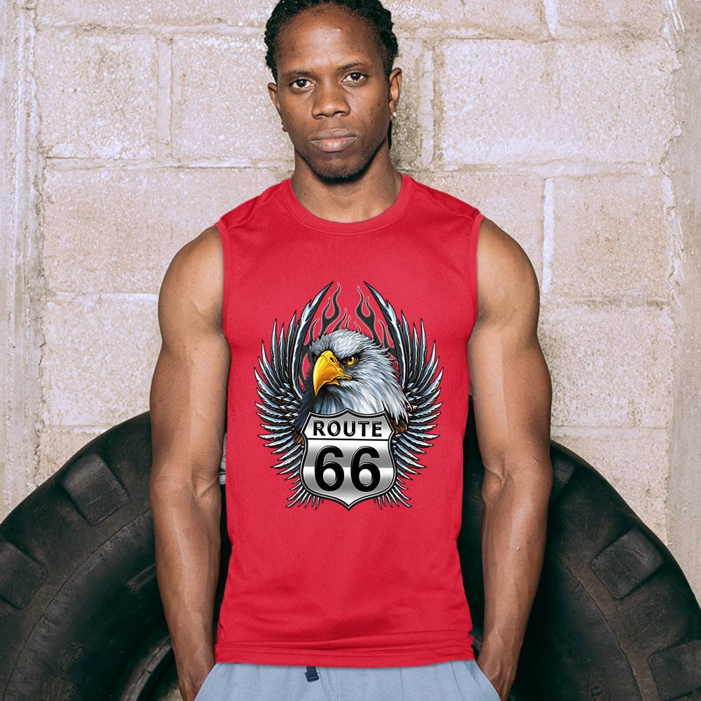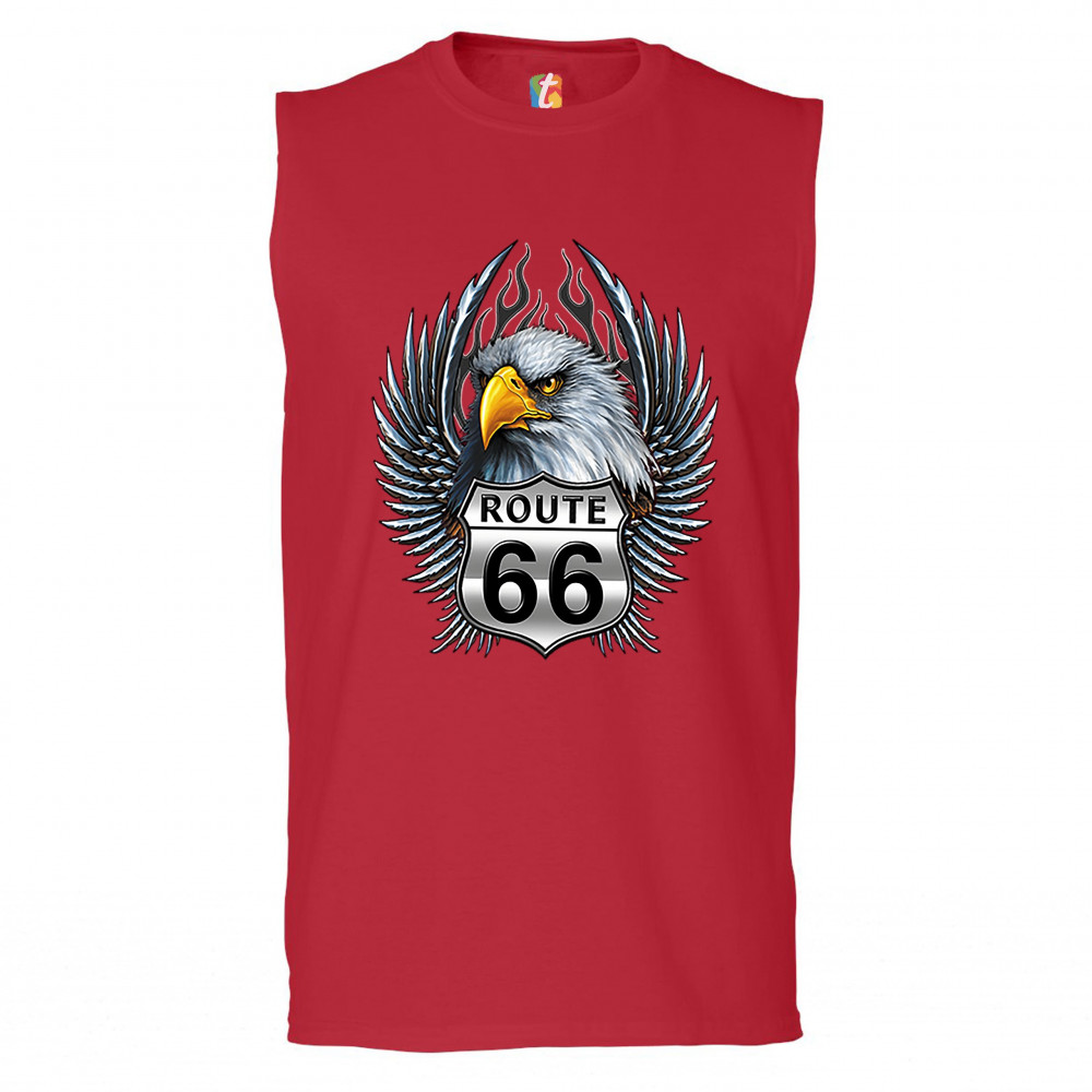 BALD EAGLE ROUTE 66 ROAD SIGN muscle shirt live to ride born to be wild men's red