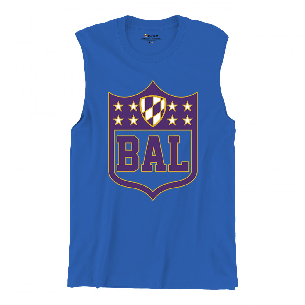 Bold BAL shield design for Baltimore football fans. Vintage sports shirt, collegiate style, and perfect Game Day Baltimore tee.
