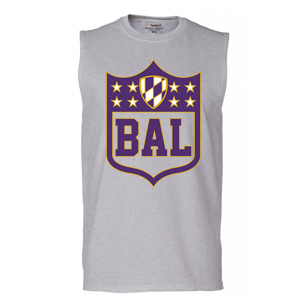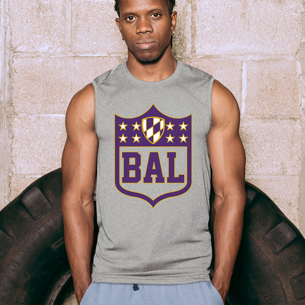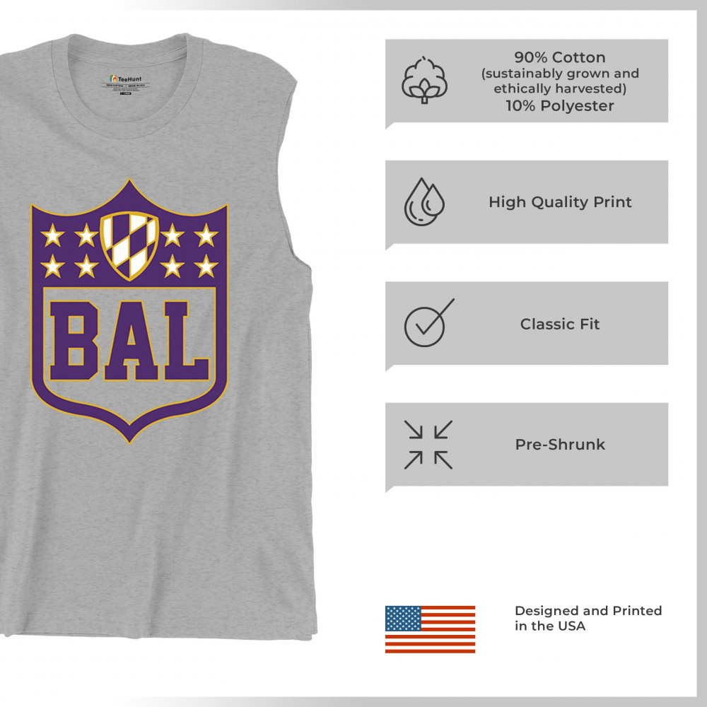Bold BAL shield design for Baltimore football fans. Vintage sports shirt, collegiate style, and perfect Game Day Baltimore tee.