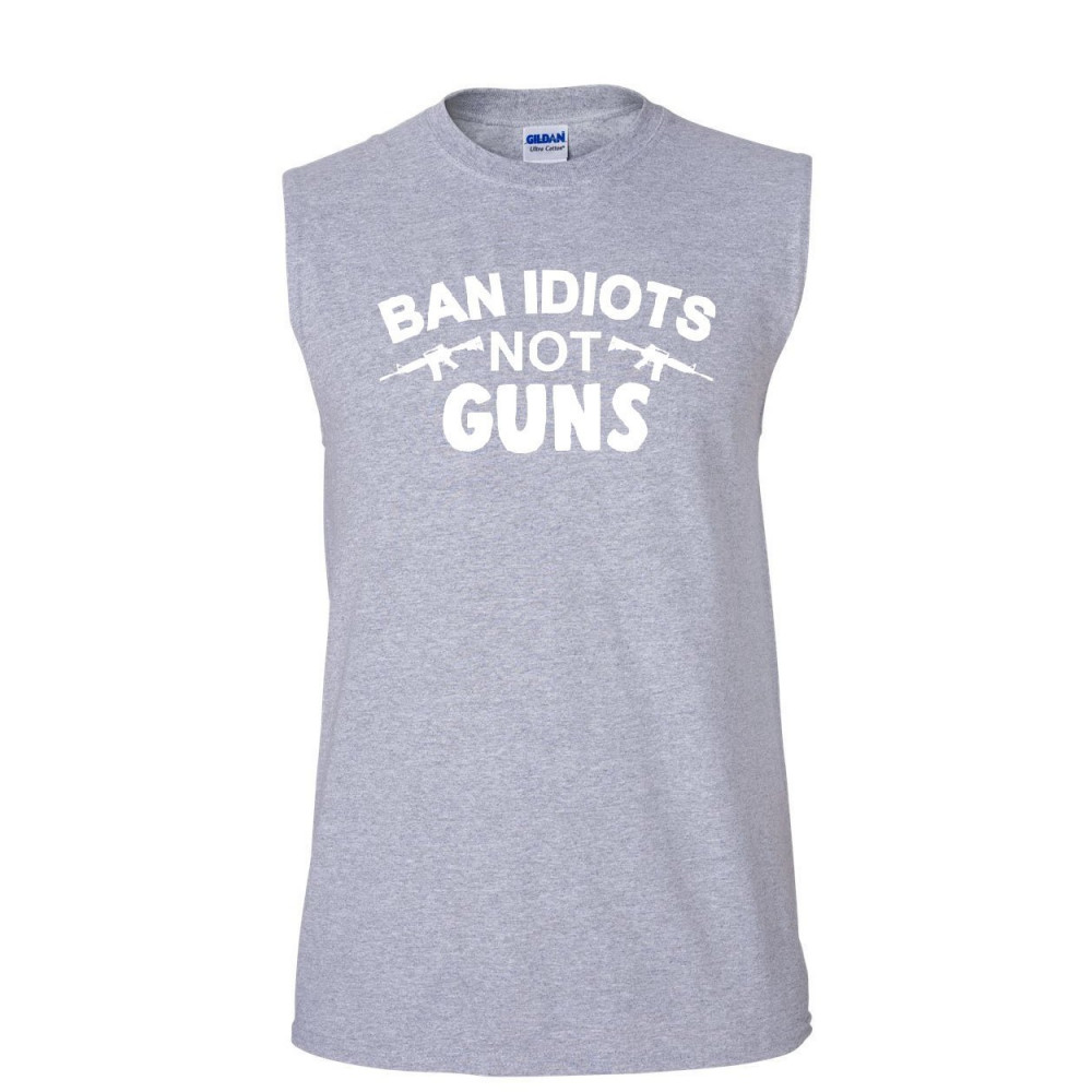 BAN IDIOTS NOT GUNS muscle shirt patriot 2nd amendment pro guns arms sleeveless gray
