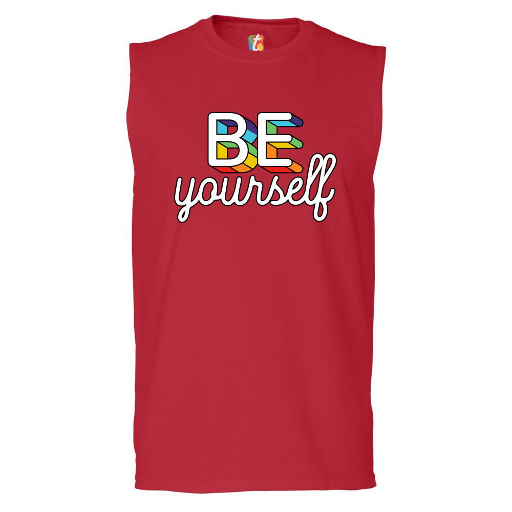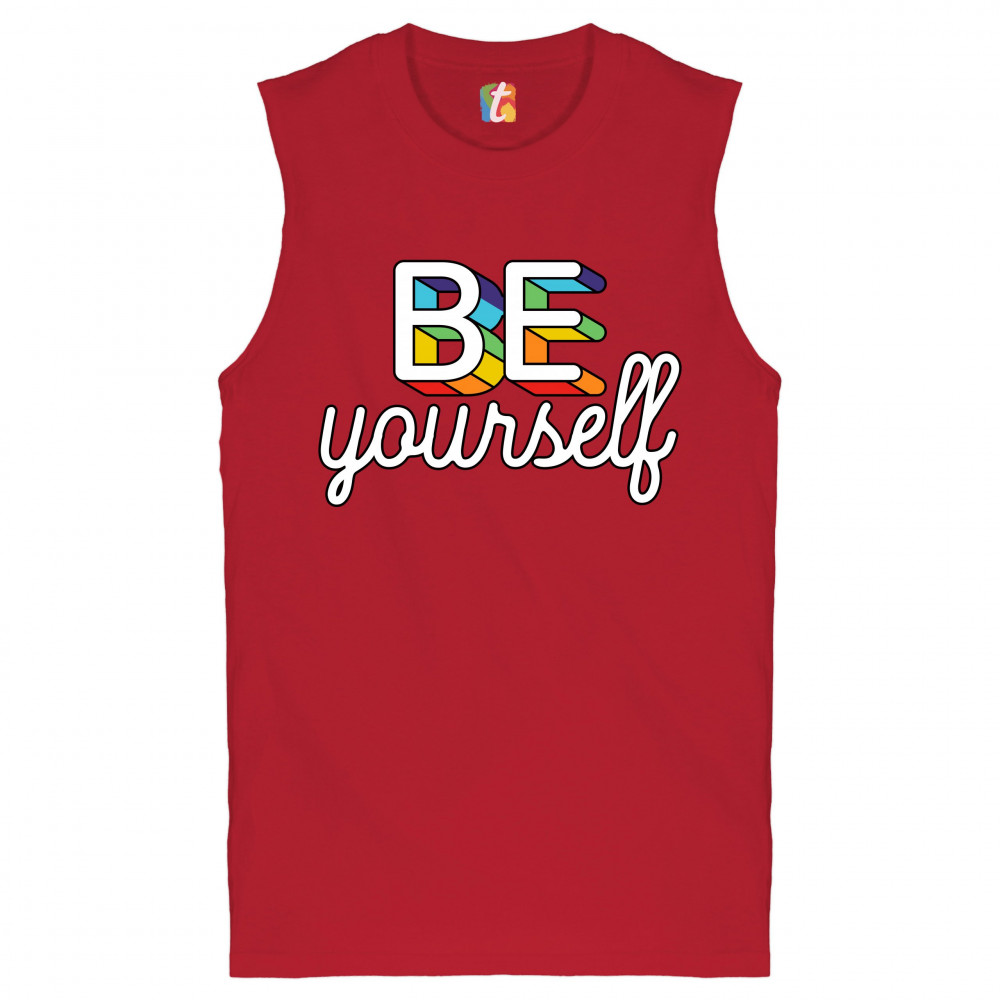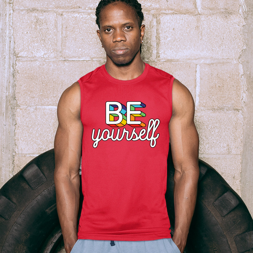 BE YOURSELF muscle shirt lgbt support gay pride rainbow good vibes ally men's red