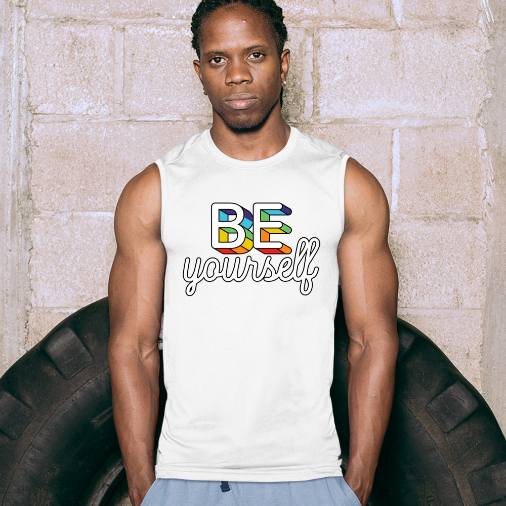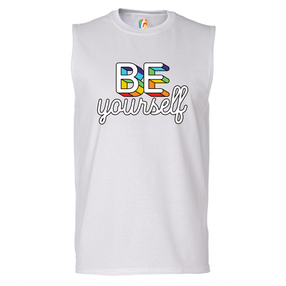 BE YOURSELF muscle shirt lgbt support gay pride rainbow good vibes ally men's white