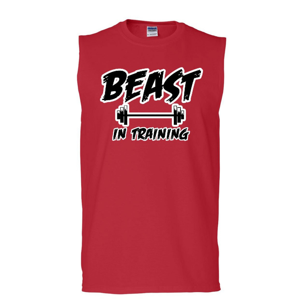 BEAST IN TRAINING muscle shirt funny gym workout fitness red