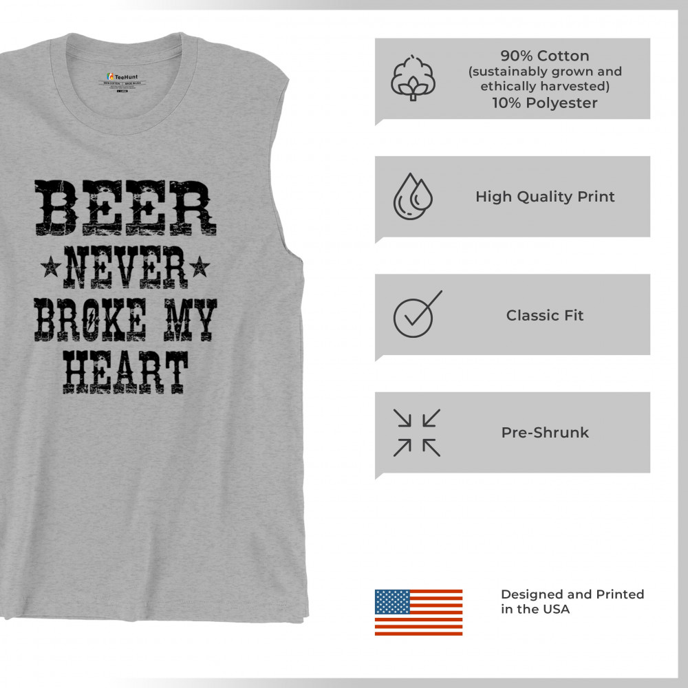 Beer Never Broke My Heart brings funny, great value style for beer lovers—perfect for bar crawls, backyard BBQs, and dad gifts.