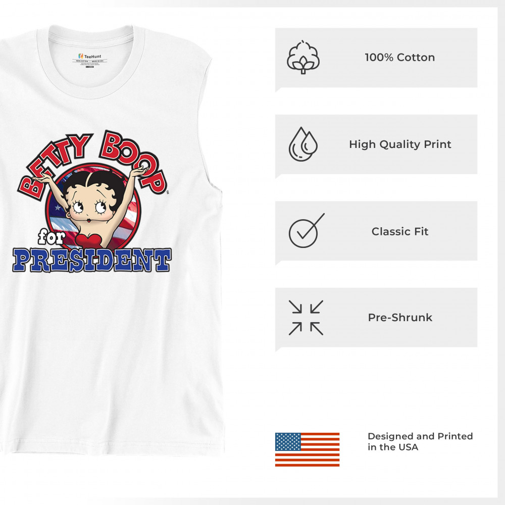 Show your playful side with the Betty Boop for President shirt! Perfect for cartoon lovers and fans of unique, humorous designs. Ideal gift for all occasions.