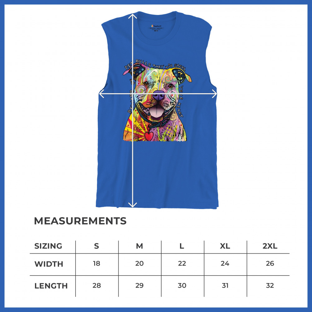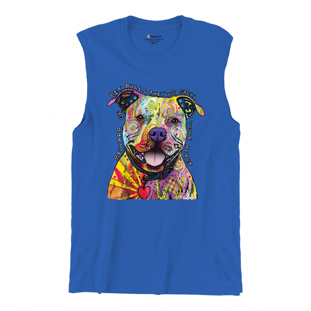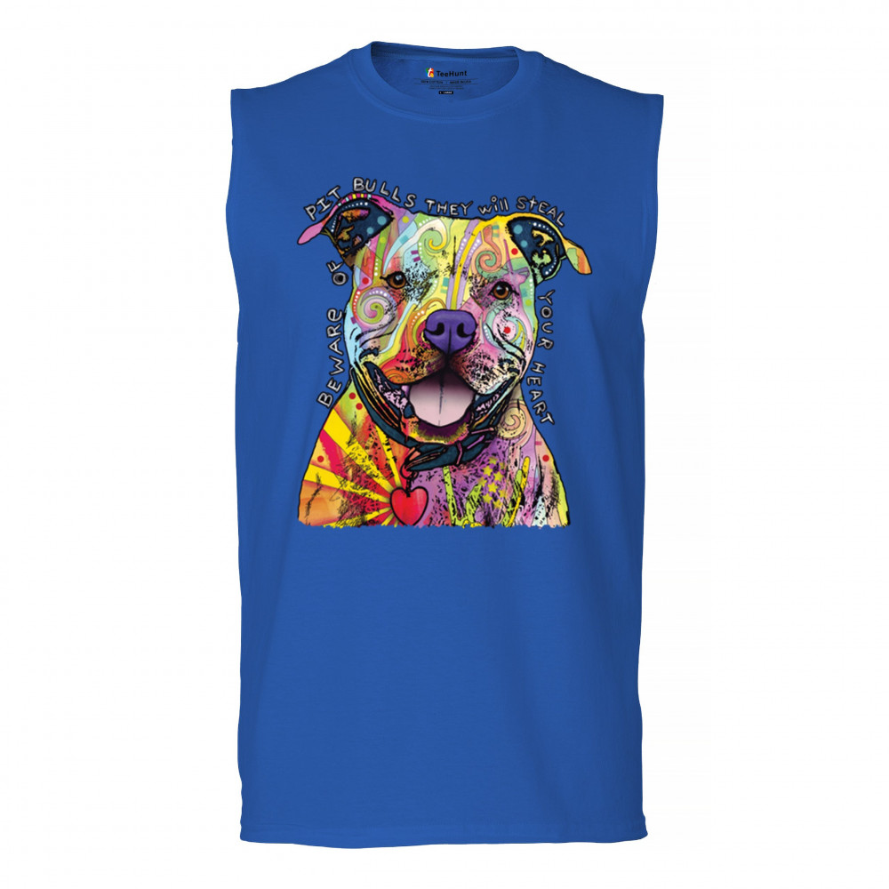 BEWARE OF PIT BULLS muscle shirt dean russo art colorful cute dog men's royal blue