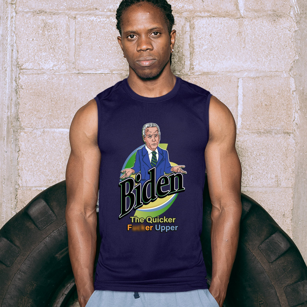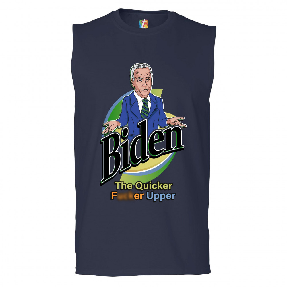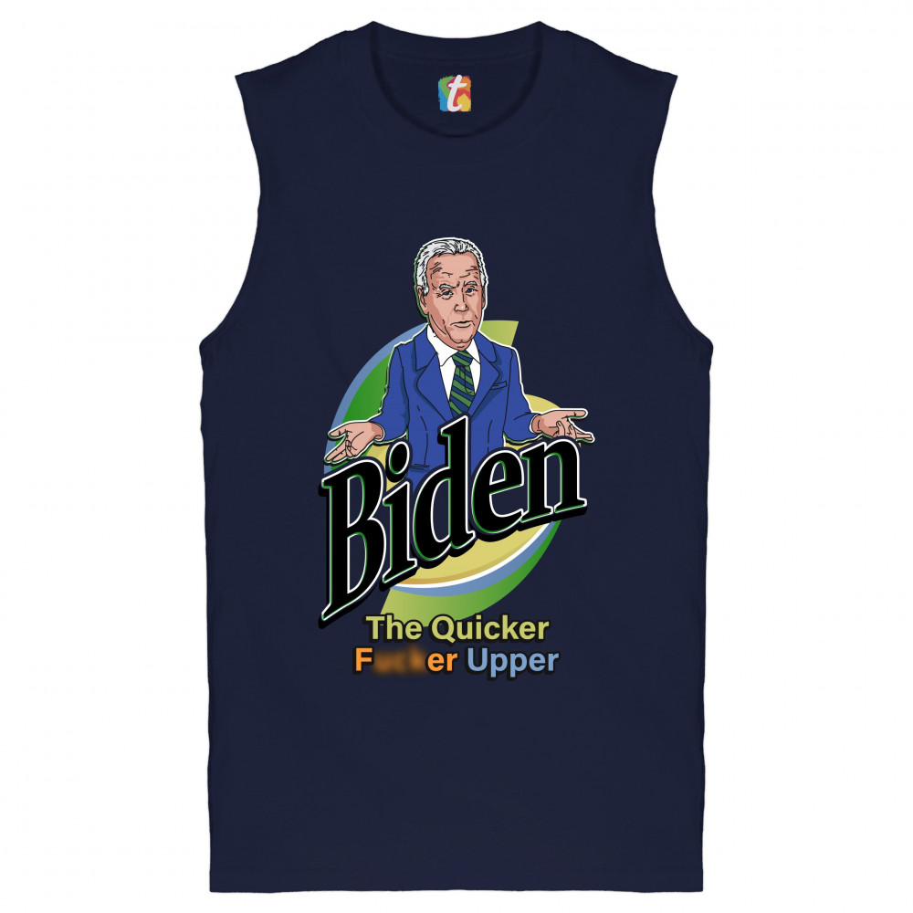 BIDEN THE QUICKER F*CKER UPPER muscle shirt anti joe biden republican men's navy blue