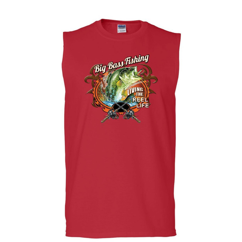 BIG BASS FISHING muscle shirt living the reel life fisherman spinning sleeveless red
