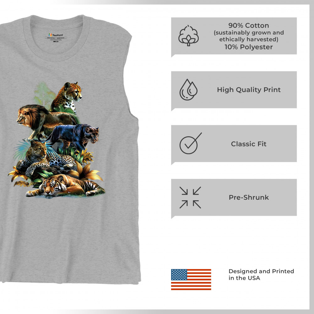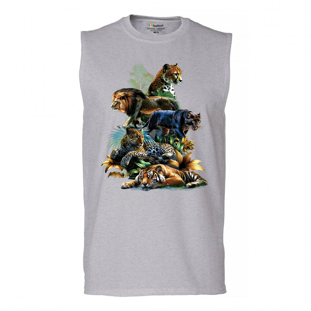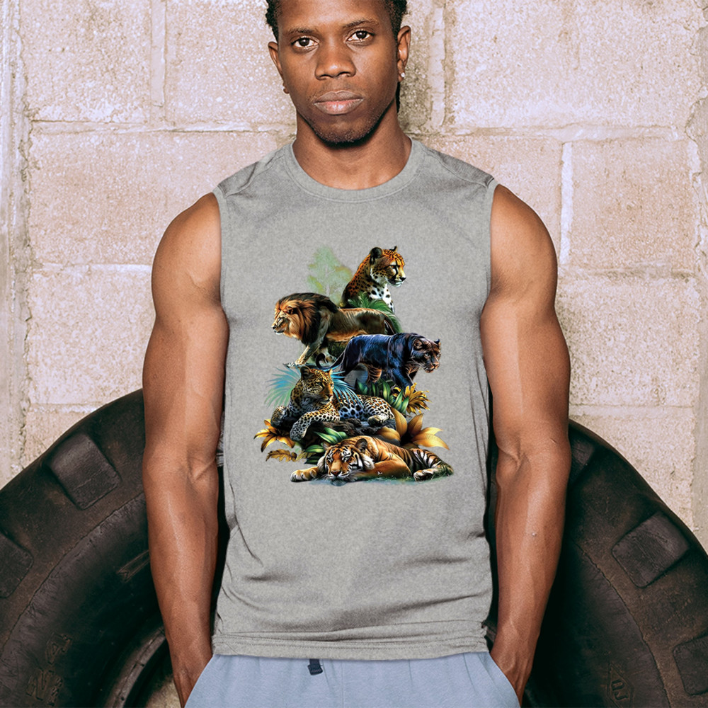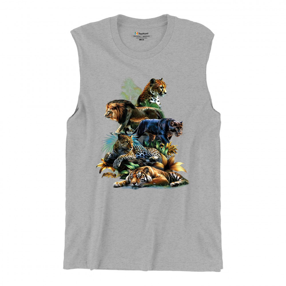 Bold big cat design with lion, tiger, leopard, cheetah, jaguar, and panther. A vivid tribute to wild nature, pride, and animal power.